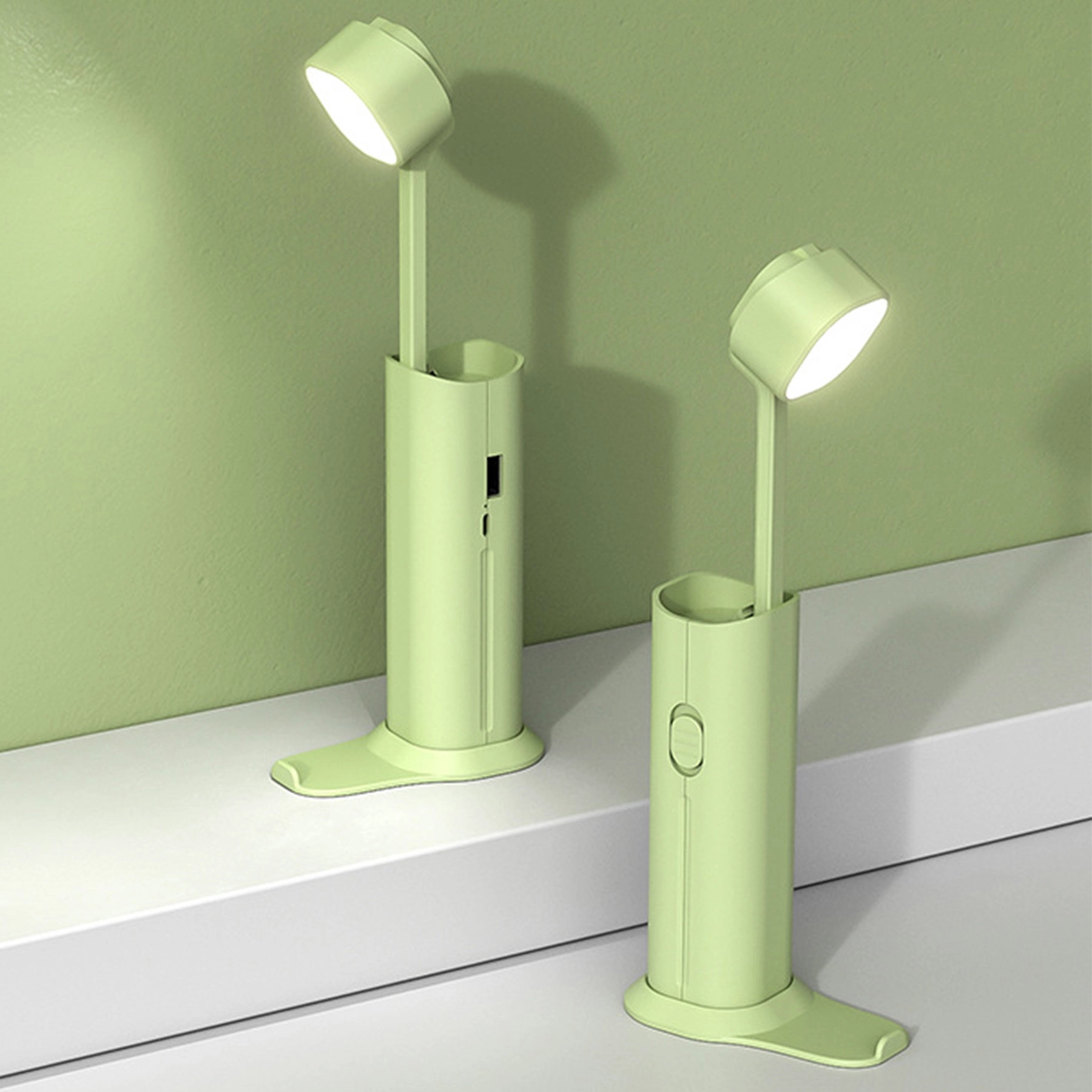 4 in 1 Multi-function LED Desk Lamp:1.Powerful Flashlight-Telescopic folding design make the desk lamp become a LED flashlight cast a wide beam that effortlessly illuminates an entire room or backyard;2.The Base Design-can be used as the mobile phone holder;3.The USB Charging Output-can provide power for smart phone, night light, usb fan, etc; 4.Soft LED Brightness-provides high-quality LED energy-saving lamp beads, eye protection, prevent radiation and long lifespan.Provides 3 brightness modes ( 2 Warm light and 1 day light). Slide the switch, adjust the brightness.Rotatable design of this portable desk lamp, allows you to adjust your table lamp with ease and to direct the light wherever you want. It is small and lightweight, foldable and portable.