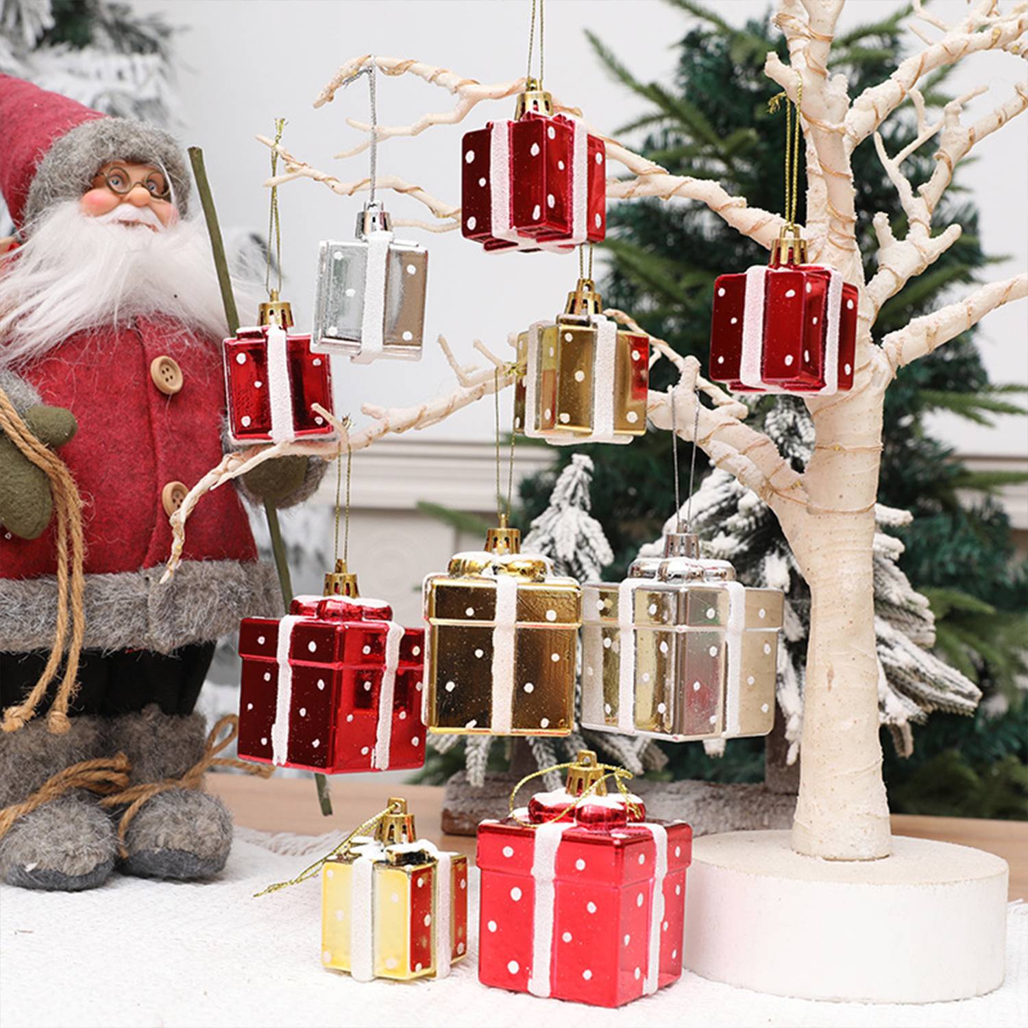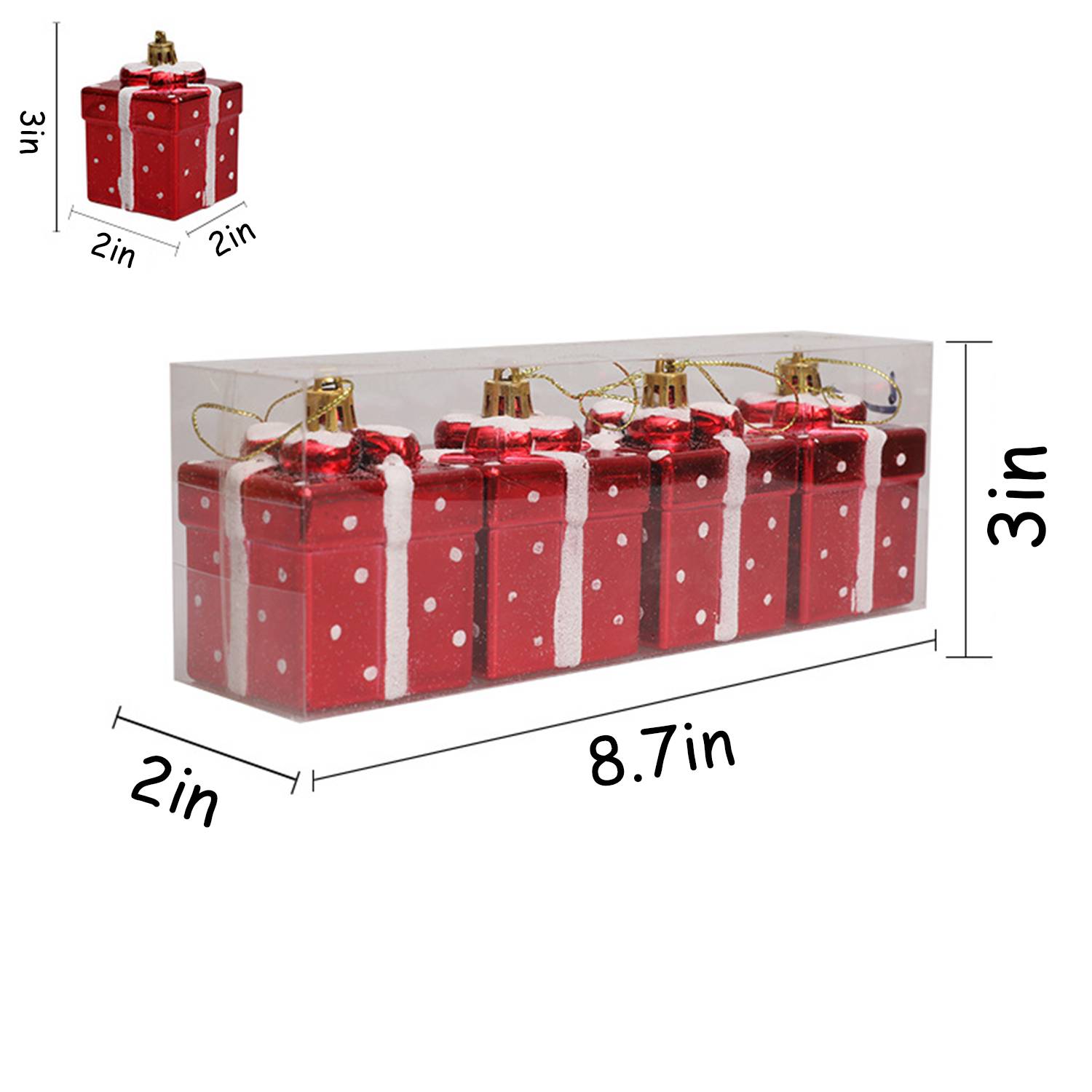 Decorate your holiday with these 4 pcs Christmas Tree Mini Gift Boxes, crafted from lightweight plastic for long-lasting use. Each box features a festive present design, perfect as a pendant decoration for indoor or outdoor Christmas trees, holiday parties, or seasonal displays. Safe and non-toxic, they add charm and color while being easy to hang, providing a fun, stress-free decorating experience for the whole family.