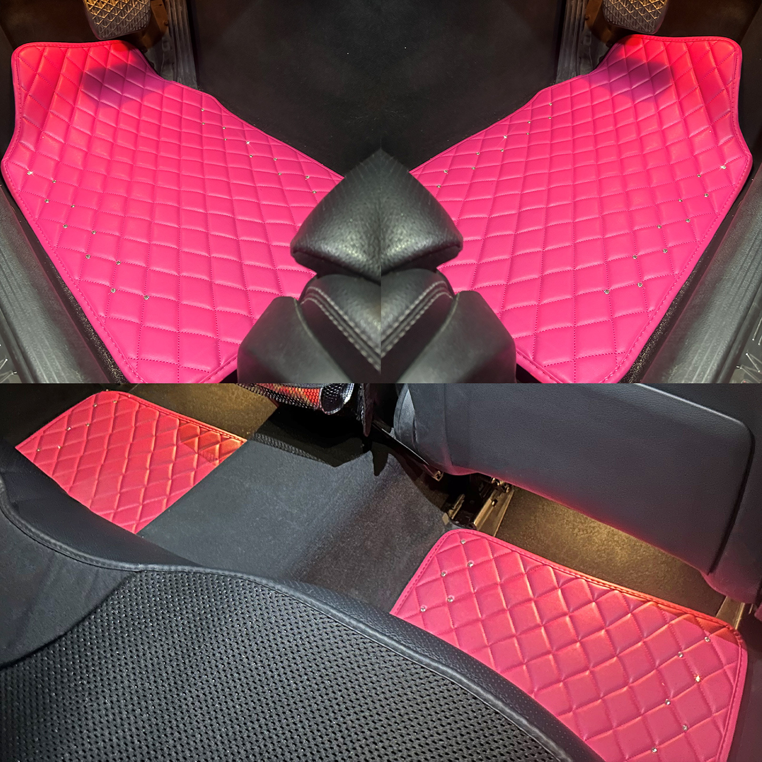 4 Pieces of Luxurious Pink Sparkling Leather Car Mats