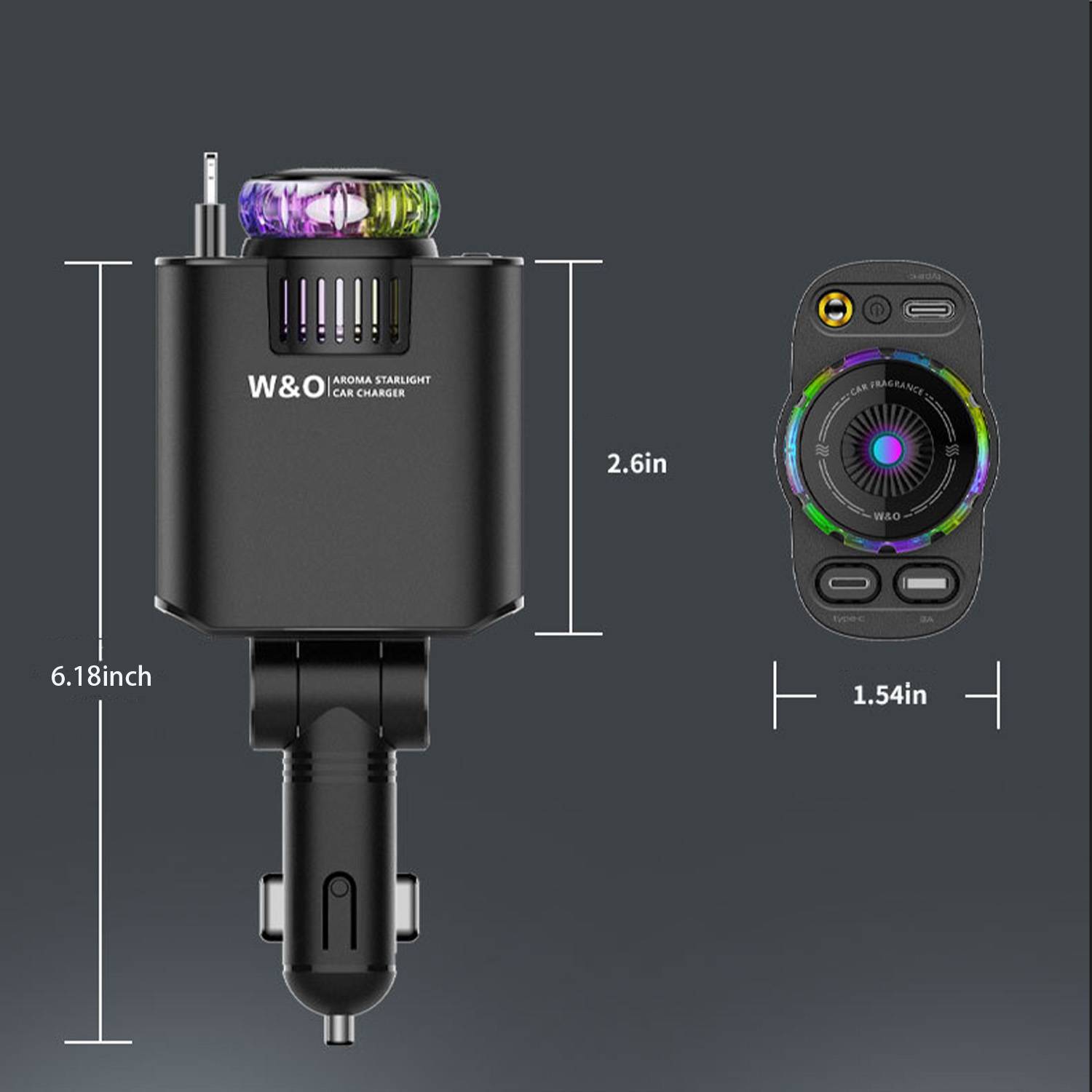 45W retractable car charger with dual ports, ABS+PC shell, fast charging, surge protection—ideal for travel and daily driving.