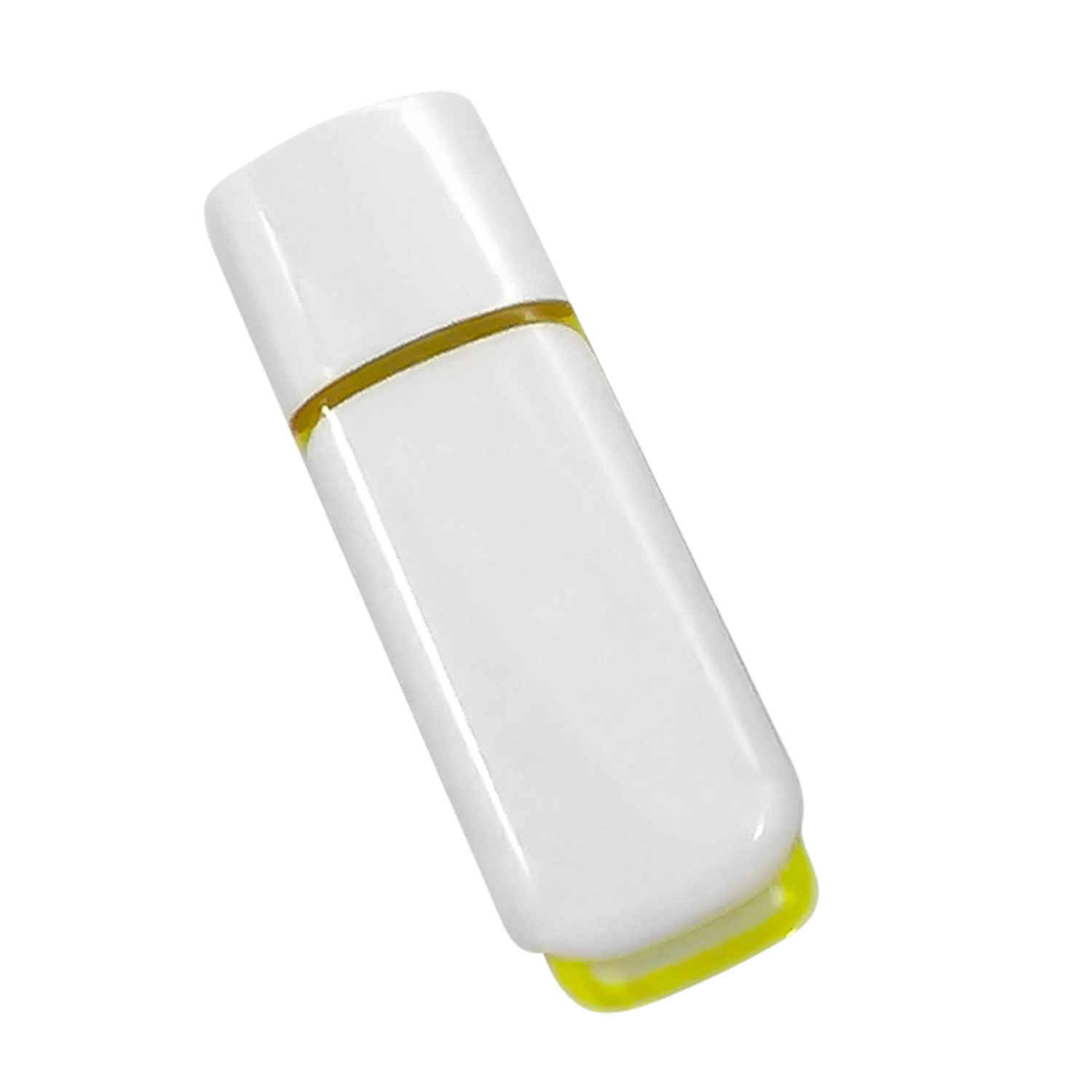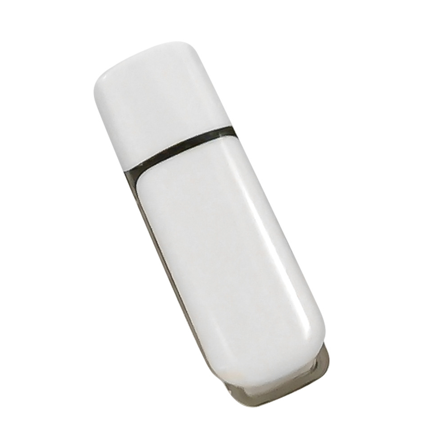 This 64G white plastic USB flash drive provides substantial storage capacity for a wide range of digital files. A distinctive translucent element is built into the body, which also incorporates a lanyard hole. This integration helps minimize the risk of misplacement. Operation is simplified with plug-and-play functionality, requiring no additional drivers for immediate use on compatible devices. It works with standard computers, laptops, car entertainment systems and media players.