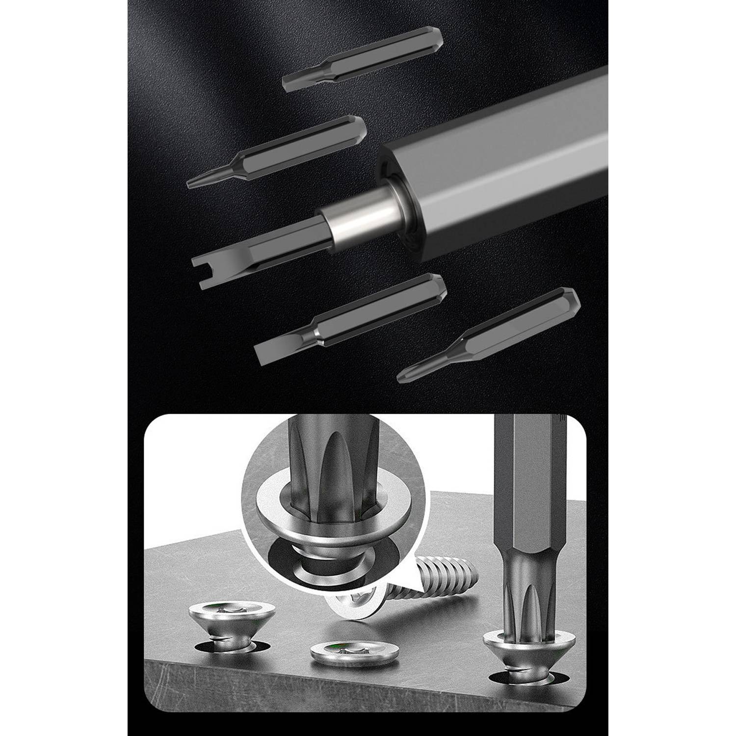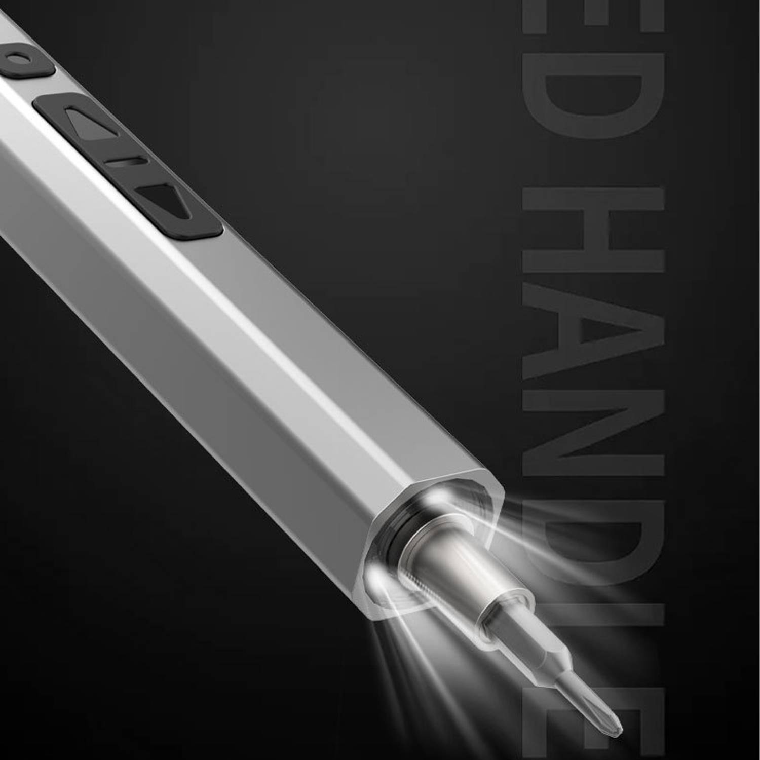Crafted from lightweight yet durable aluminum alloy, this 66-in-1 precision electric screwdriver set features a rechargeable USB-C powered motor with adjustable torque and a built-in LED light for illuminated work in low-visibility areas. The kit includes 66 precision bits covering Phillips, slotted, Torx, and hex types for electronics, glasses, watches, and small appliances. Its ergonomic design provides comfortable grip during prolonged use.