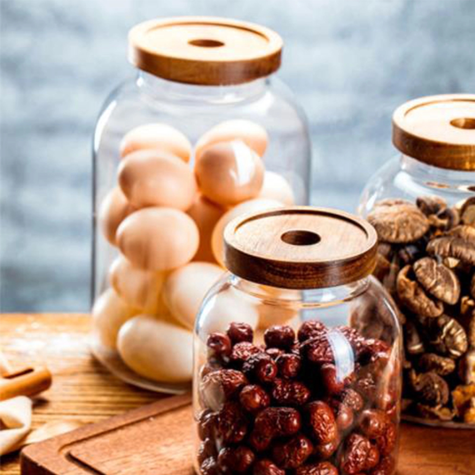 BEAUTIFUL Countertop Storage: The glass storage jars are perfect storing your frequently used baking goods on your counter. Counter storage is not only convenient but also is a gorgeous new kitchen trend.