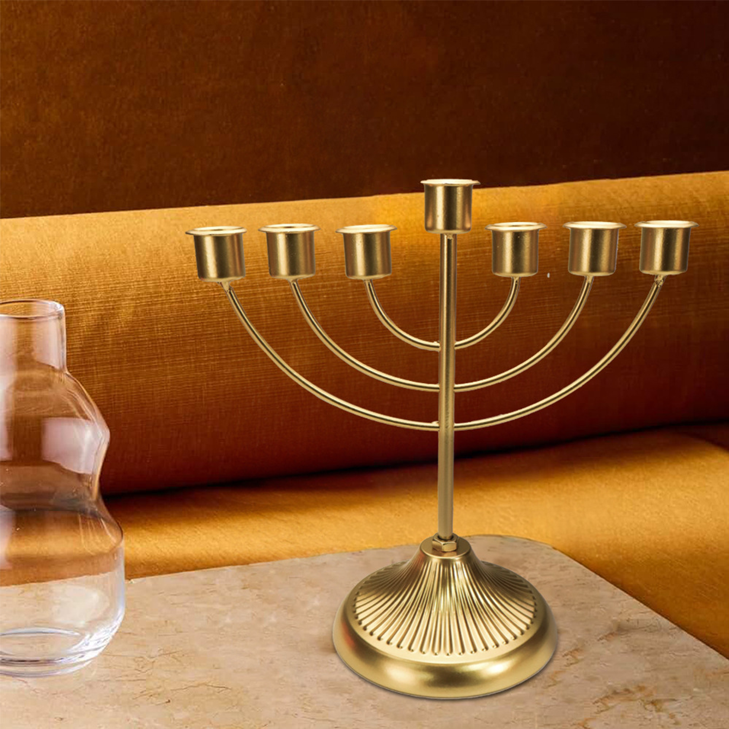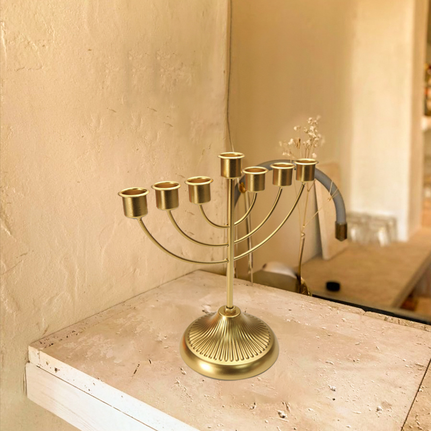 7 Branch Iron Gold Hanukkah Candlestick Candle Holder