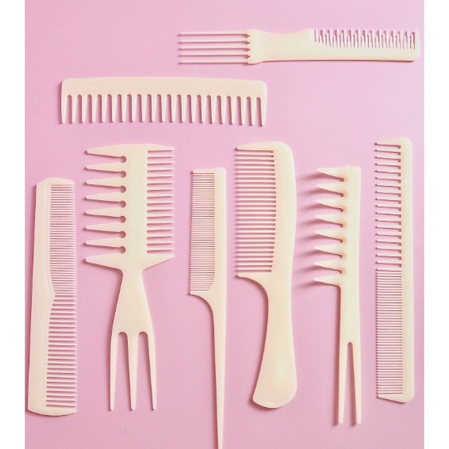 This PVC Comb Set of Eight, featuring a range of versatile and stylish hair care tools