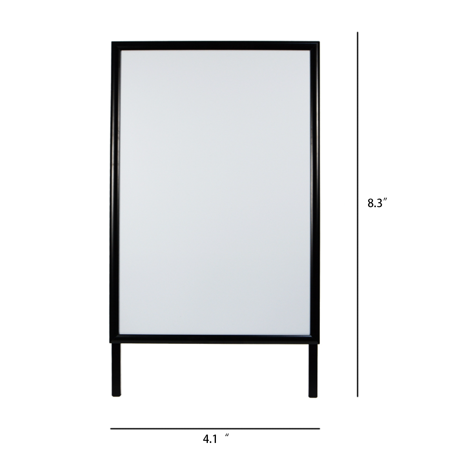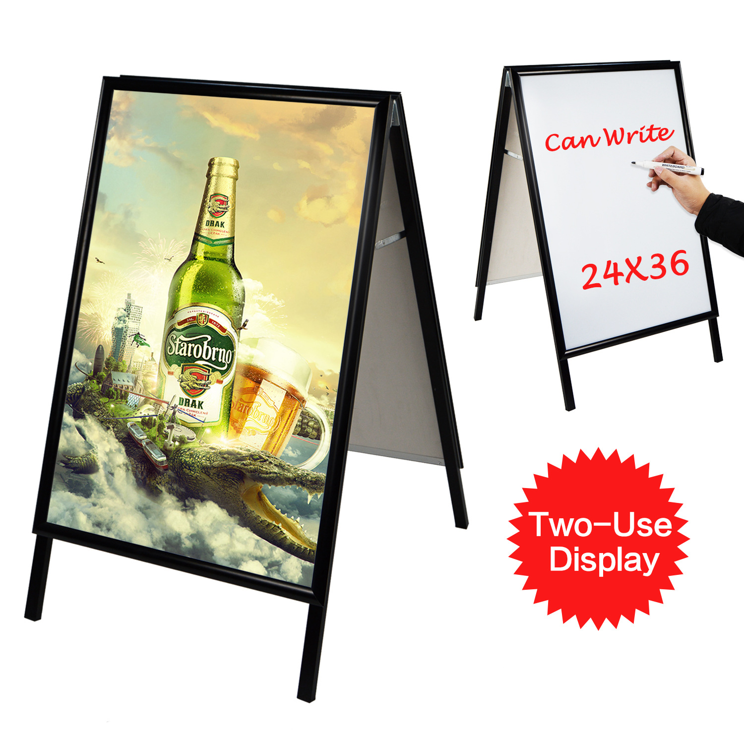 This A frame standing metal sandwich board is made of metal materials designed for outdoor use. Measuring 4.1 by 8.3 inches, it features a wipeable blackboard surface that allows for easy writing and erasing, making it ideal for displaying menus, special offers, or event information. The A-frame design ensures stability, while its lightweight structure allows for easy relocation. Perfect for events, this chalkboard easel enhances visibility and attracts customers.