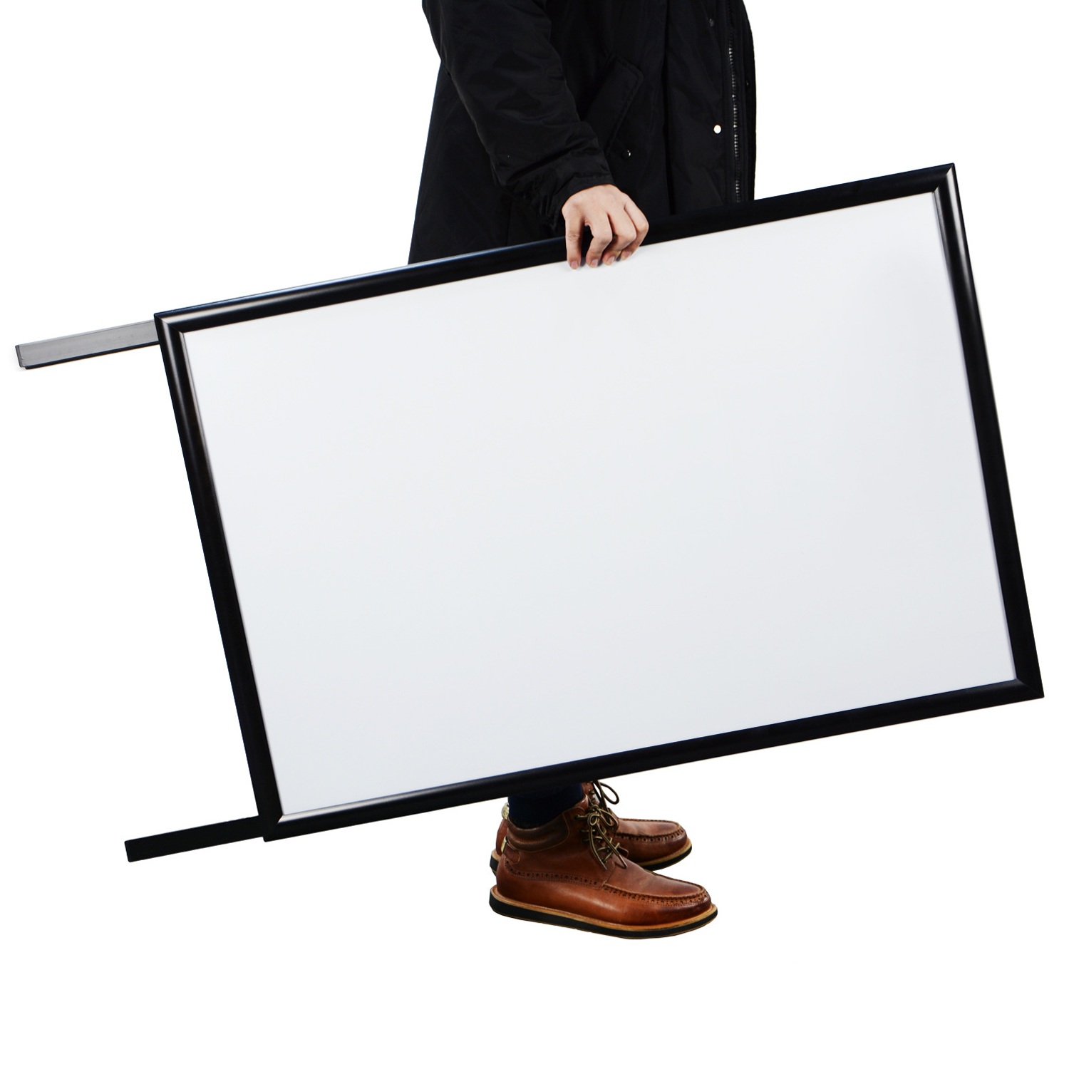 Metal A-frame chalkboard with wipeable surface, stable and lightweight, ideal for menus, events, and easy outdoor use.
