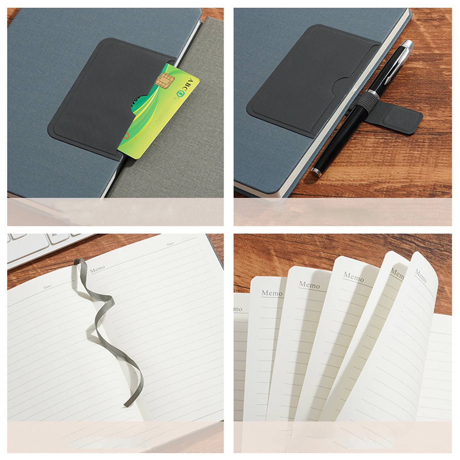 A5 PU leather business notebook with magnetic closure, card slot, pen holder, ribbon bookmark, smooth writing.