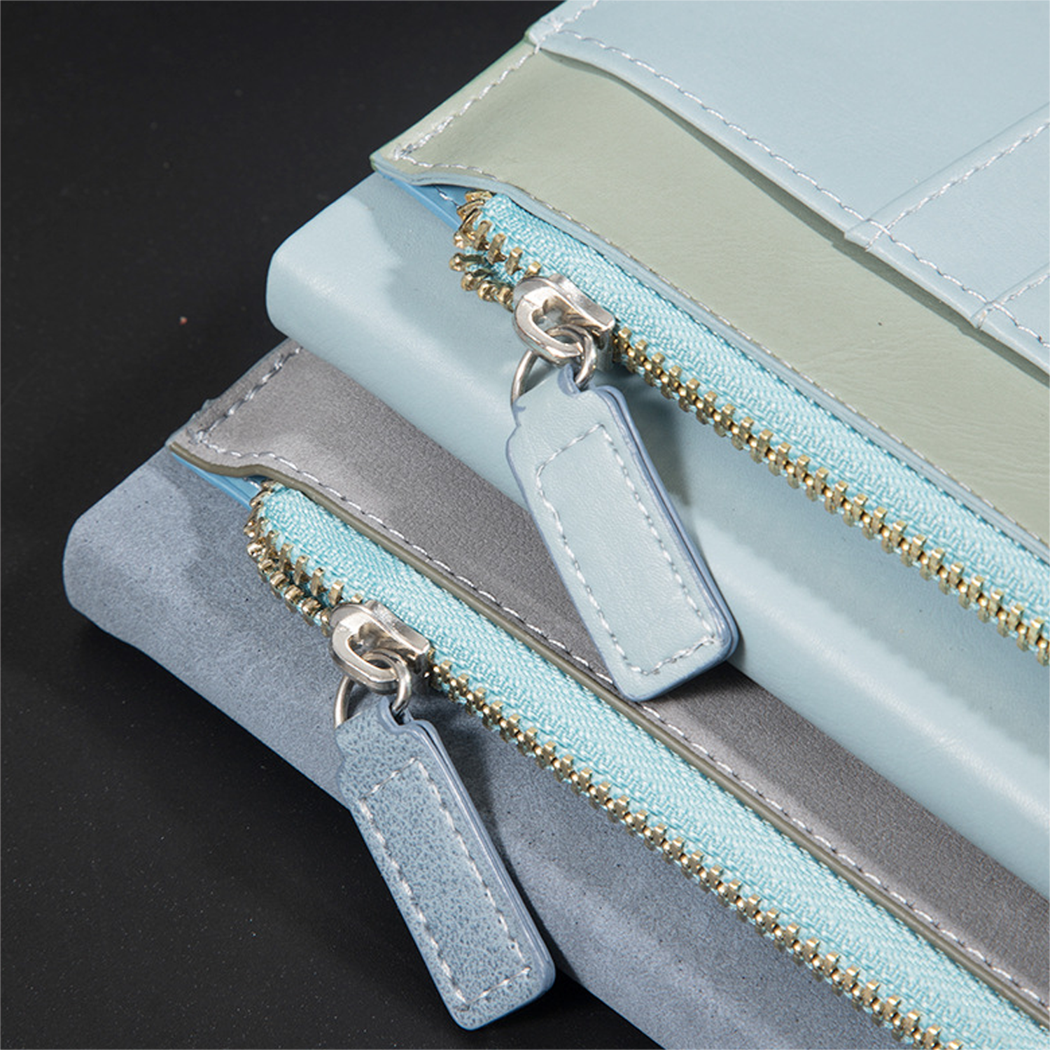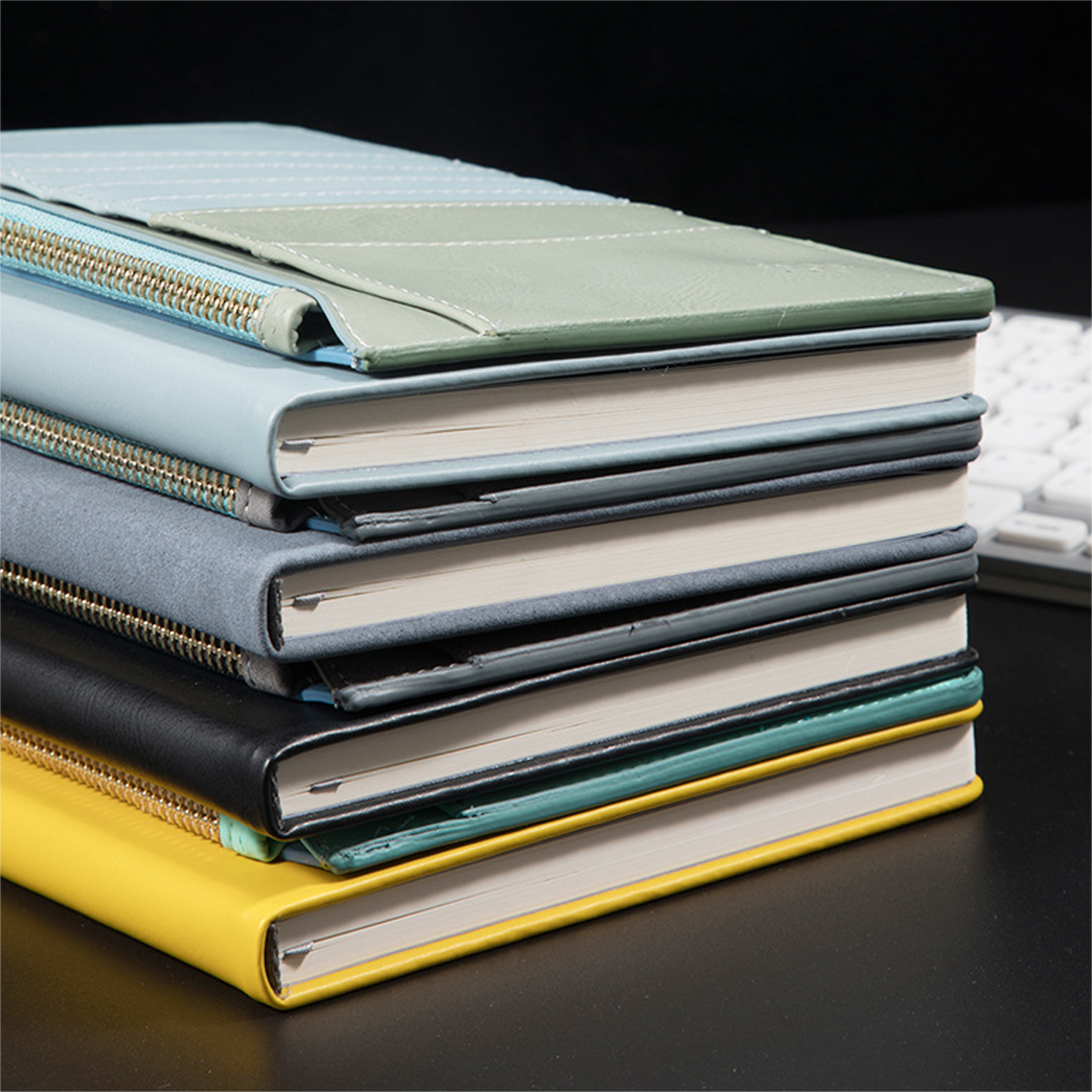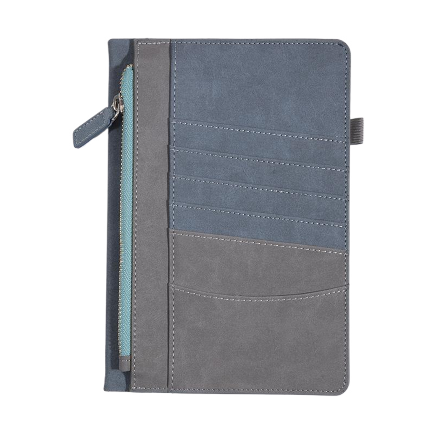 A5 PU leather notebook with a zipper pouch. Includes card slots,loop and 110 thick pages, serving as a portable organizer.