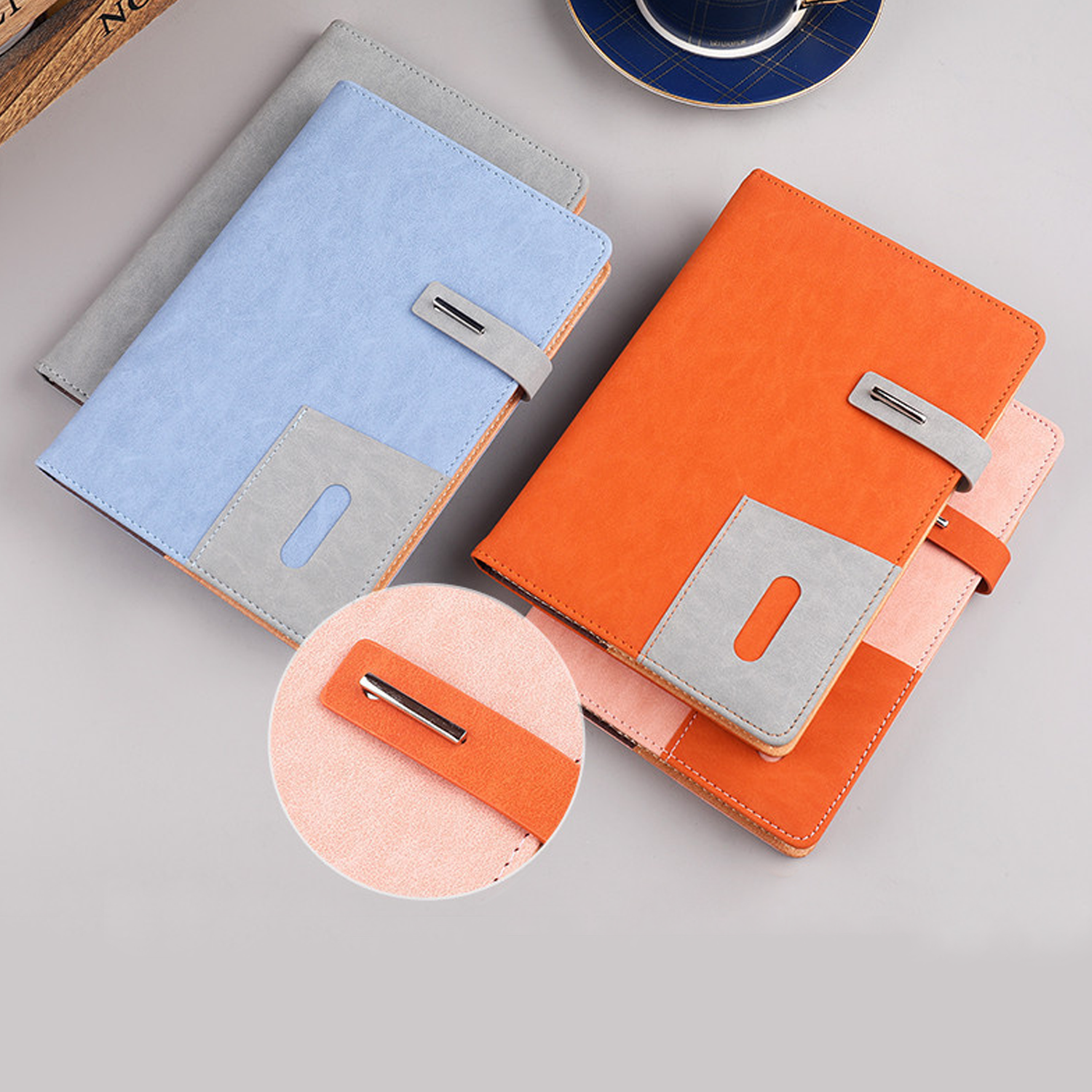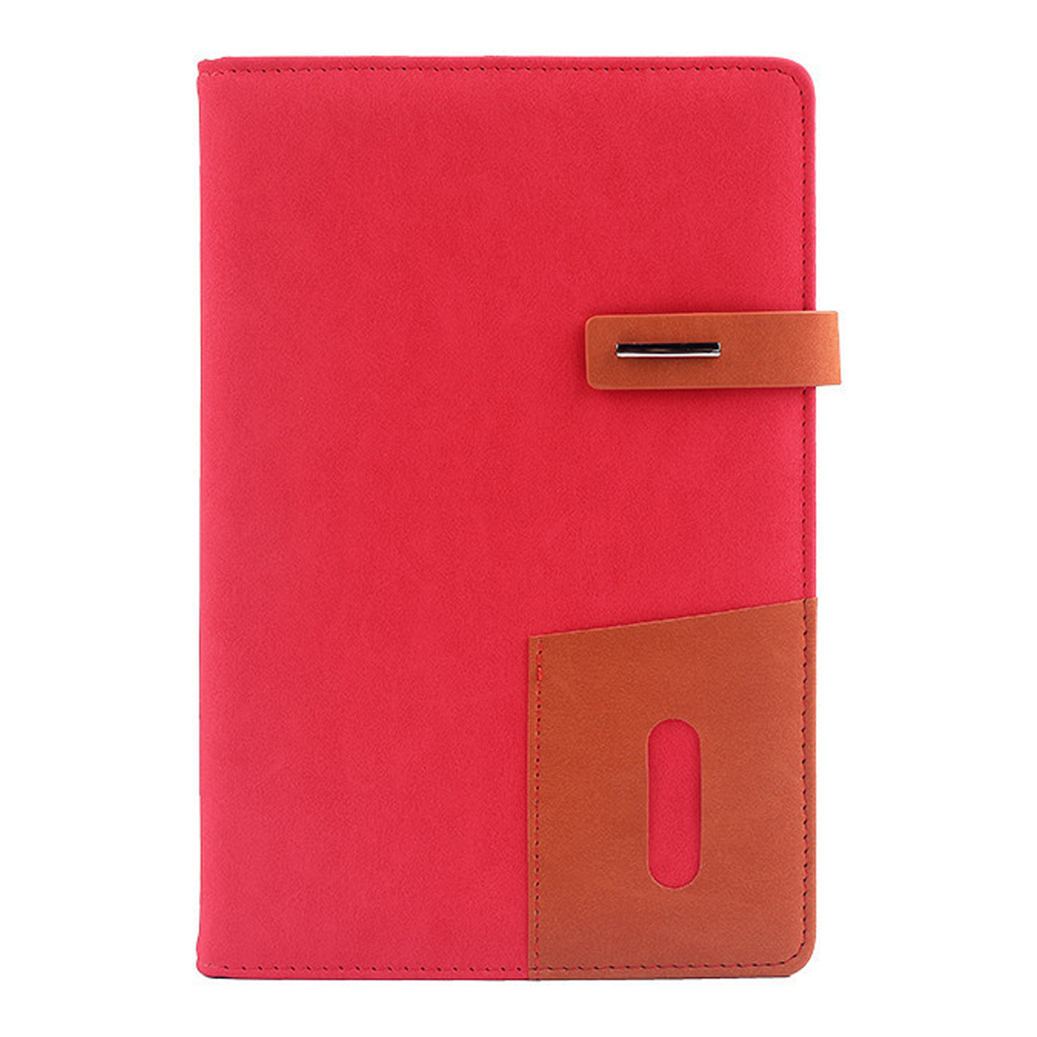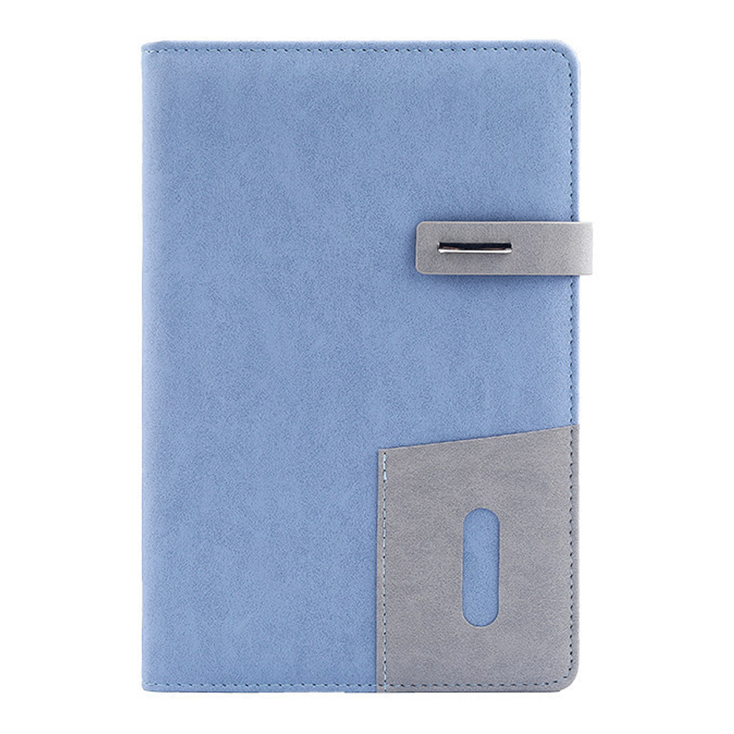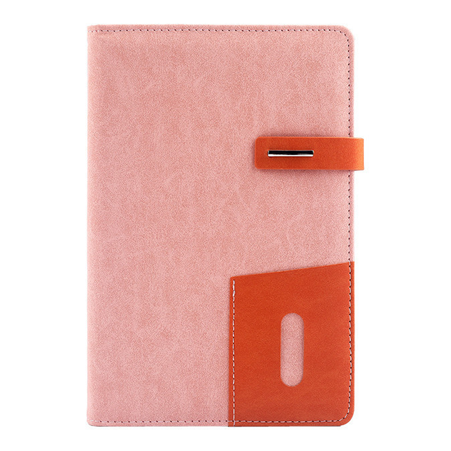 This A5 size notebook is crafted from PU material. It contains 100 pages for writing, sketching, or note taking. The front cover includes a dedicated slot designed to hold cards such as identification, business cards, or bank cards. A practical closure strap secures the notebook contents, while an attached ribbon bookmark helps keep your place. An elastic pen loop is integrated for storing a writing instrument. This notebook is tailored for business, academic sessions or personal journaling.