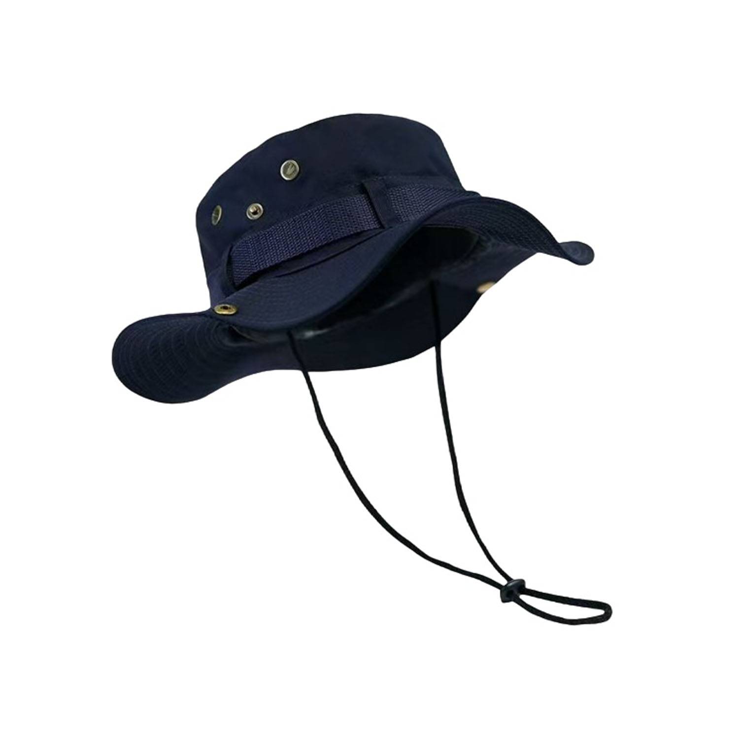 This adjustable drawstring bucket hat is crafted from durable polyester with a double-layer cotton blend for lasting comfort and wrinkle resistance. Equipped with brass ventilation holes, it ensures breathability and keeps you dry during outdoor activities. The wide brim offers excellent sun protection, while the windproof strap keeps the hat secure on breezy days. Ideal for travel, hiking, fishing, or any outdoor adventure, this hat combines functionality and comfort for all your needs.