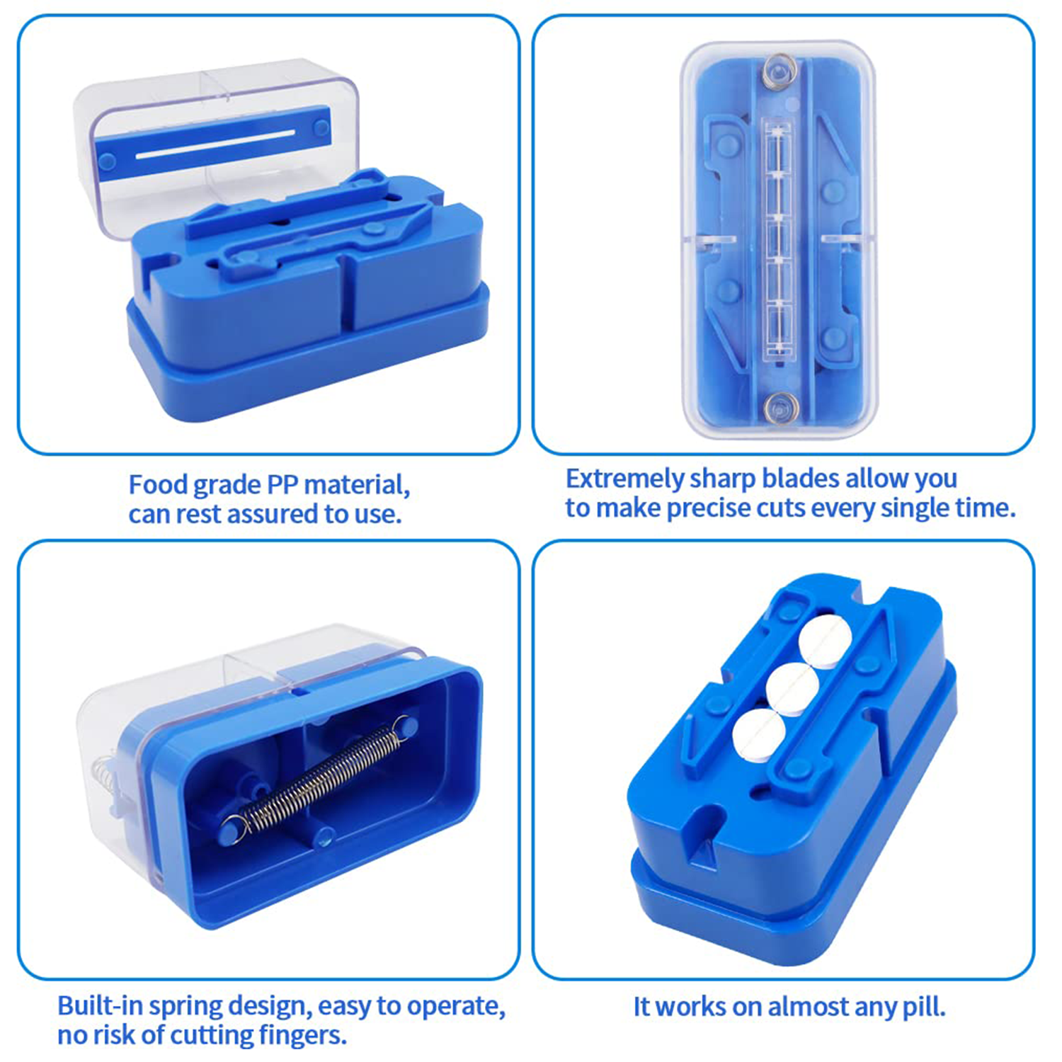 The unique adjustable pill channel design can fully hold the pill at any size to achieve easy and accurate cutting.
