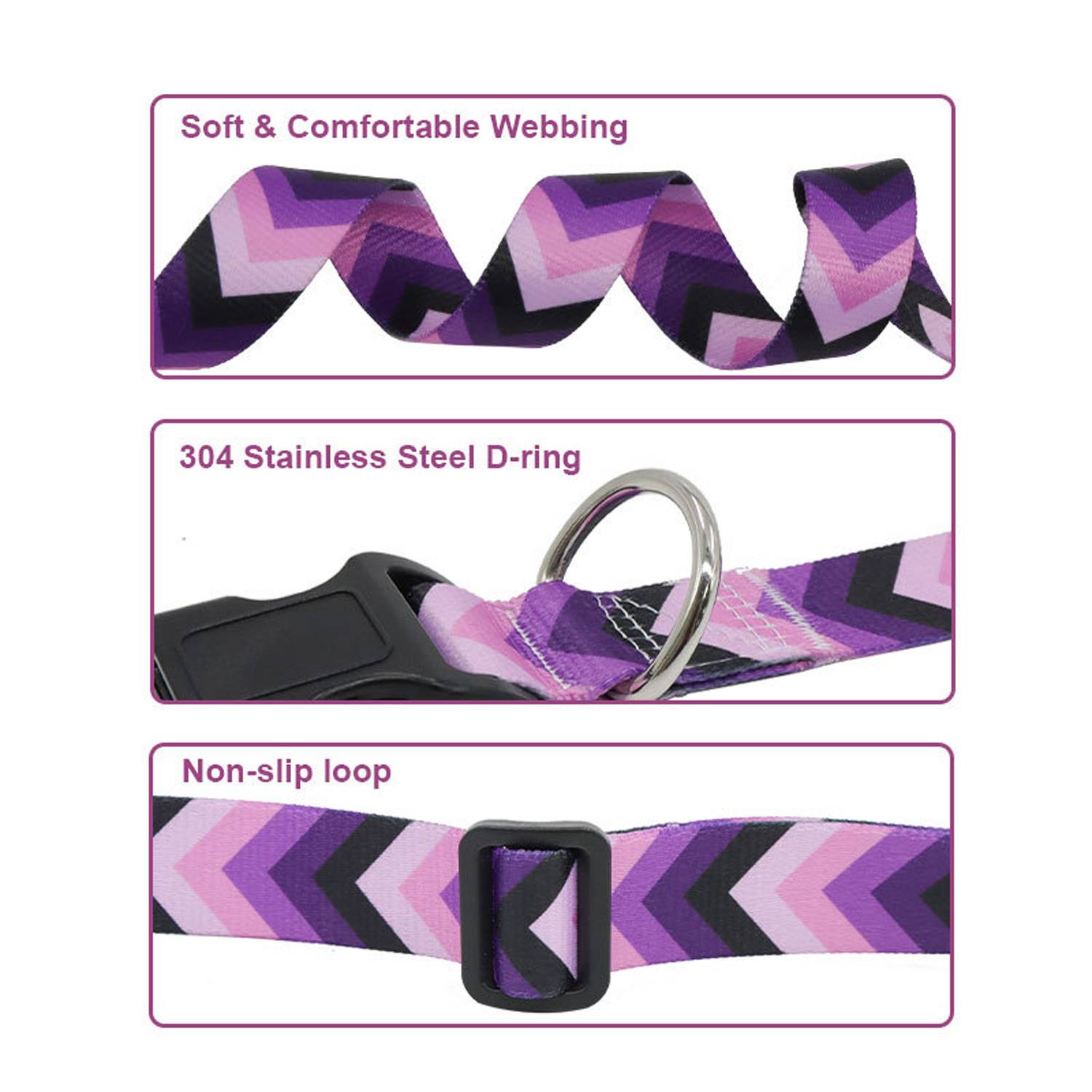 This stylish dog collar features a unique Bohemia floral tribal geometric pattern, making your pet stand out during walks or travels. Made from soft polyester fiber, it offers a comfortable, lightweight fit. Durable material and quick-release buckle ensure long-lasting use and easy wear. Equipped with a sturdy metal D-ring, it provides secure leash attachment. Adjustable sizing fits small to medium breeds, combining fashion, comfort, and safety for everyday use.
