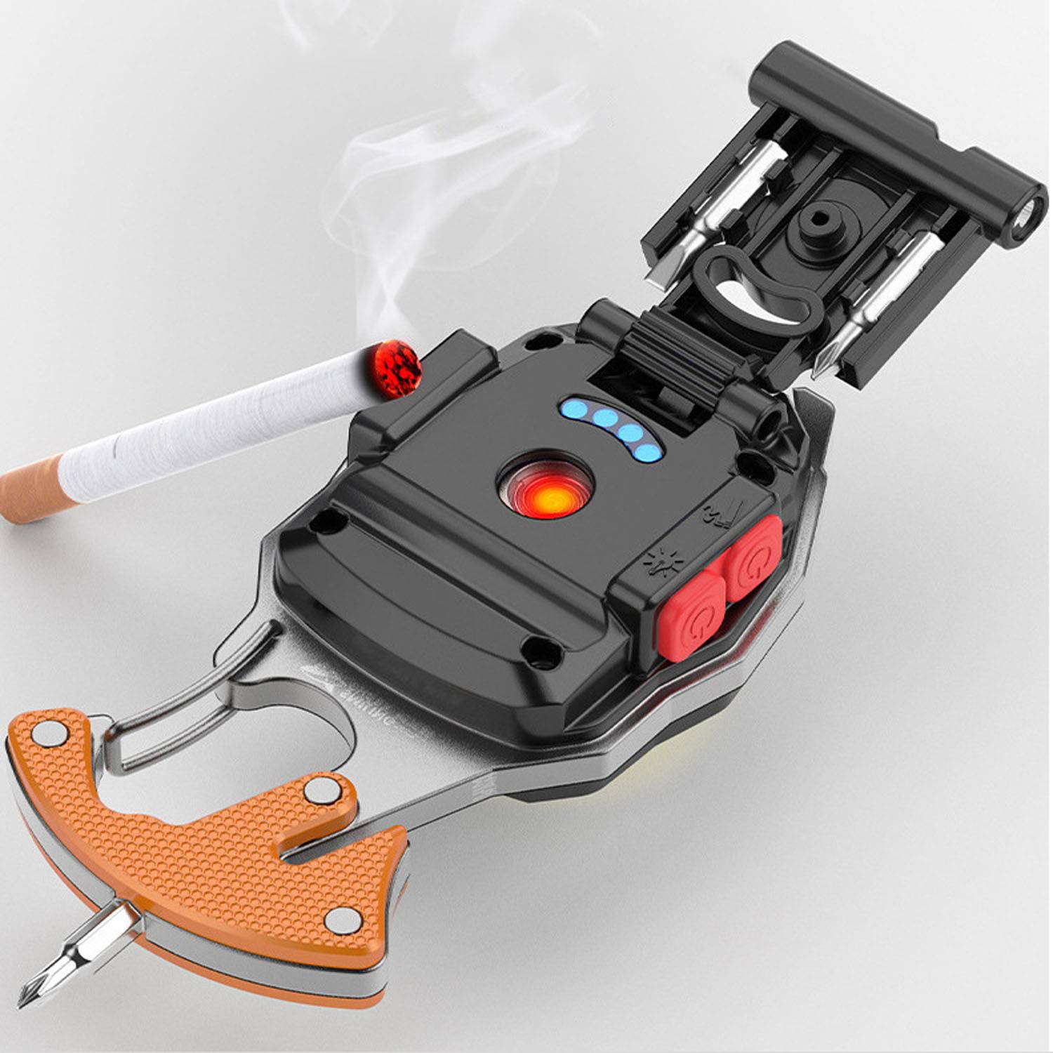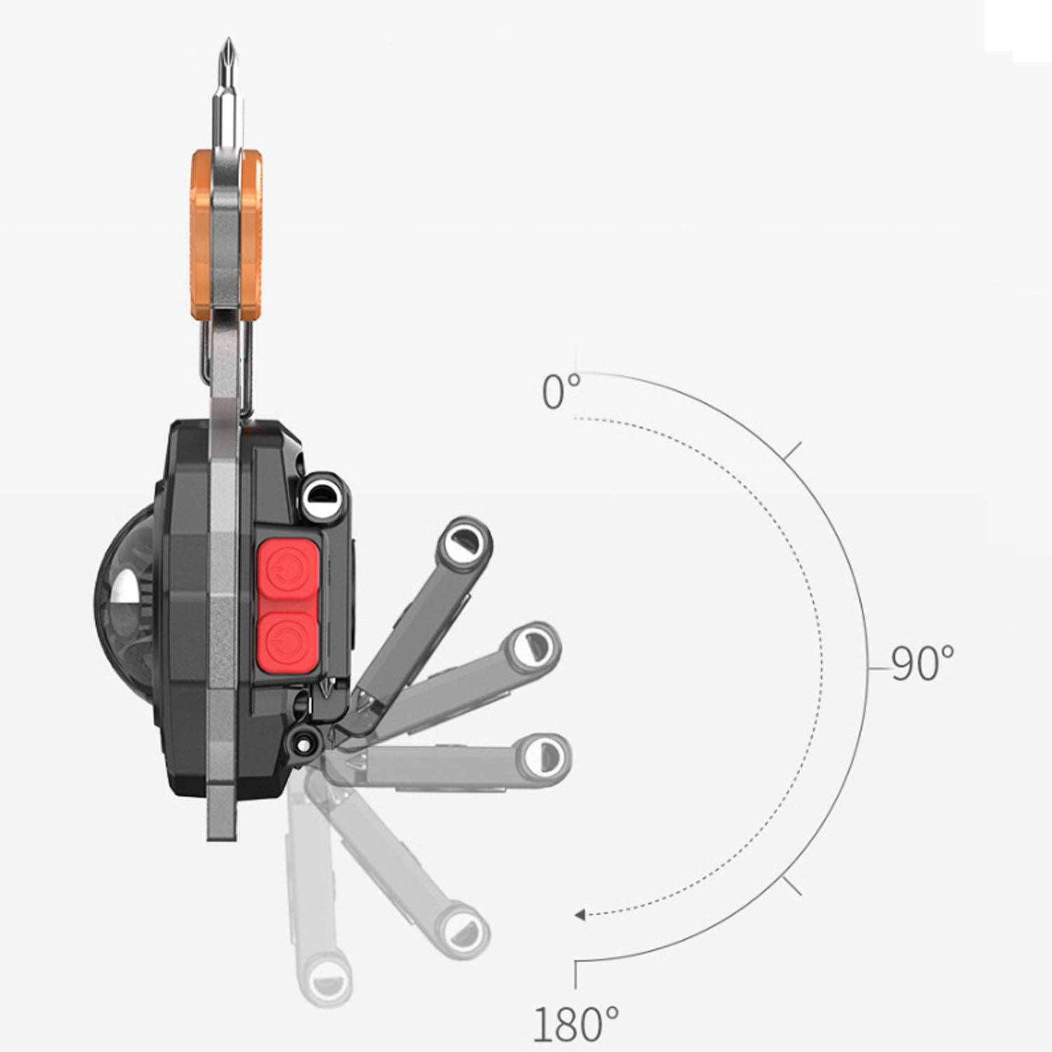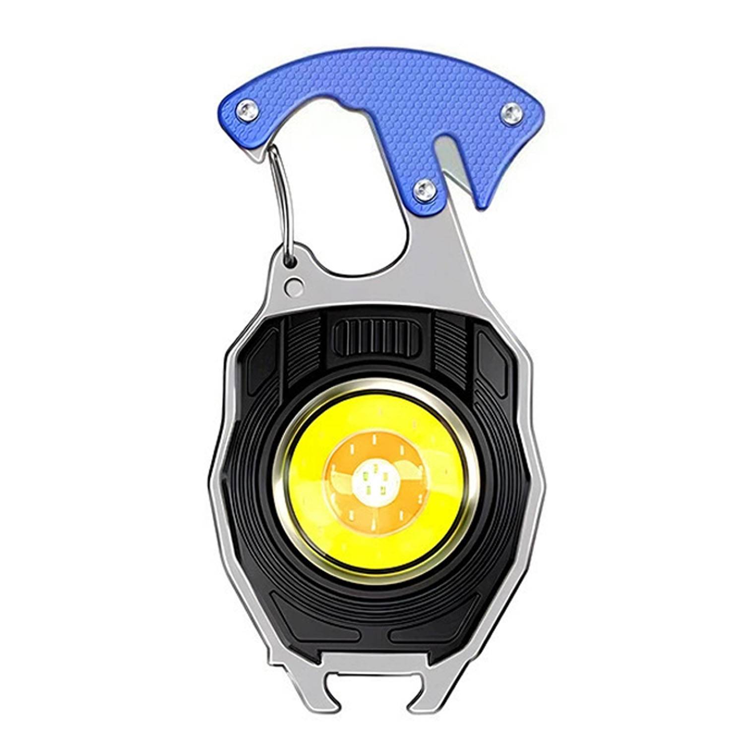 Made of durable aluminum alloy, this multifunctional keychain light features a built-in screwdriver, rope cutter, bottle opener, wrench, and emergency whistle. With a high-capacity battery and convex lens, it delivers strong wide-angle illumination. It offers 7 light modes including red flashing and ultra-bright. The magnetic base attaches to metal surfaces, and its waterproof, corrosion-resistant build ensures reliable use during camping, hiking, or repairs.
