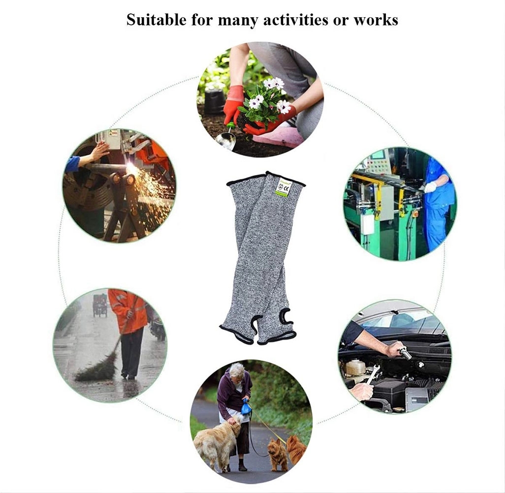 The cut resistant sleeves made of HPPE,15times stronger than steel.High performance polyethene makes it highly breathable,elastic,comfortable and lightweight.Ursokuz arm protection sleeves designed to protect your skin against bruises,scratches,rose thorns.Ergonomic design,these sleeves with Thumb Hole give your arms a secure and snug fit,making sure that they won’t ride up and expose the forearm between the glove and sleeve.Suitable for air conditioning manufacture,assembly,cutting protection,food service,glass carrying,chainsaw handle,thermal protection,storage,gardening.It helps to prevent bruises and dog and cat bruises,cut protection,abrasion resistance,cut resistance,skin irritation and heat resistance.Lastly,the price for 10,000pcs is based on shipping by sea.Your logo is welcome.