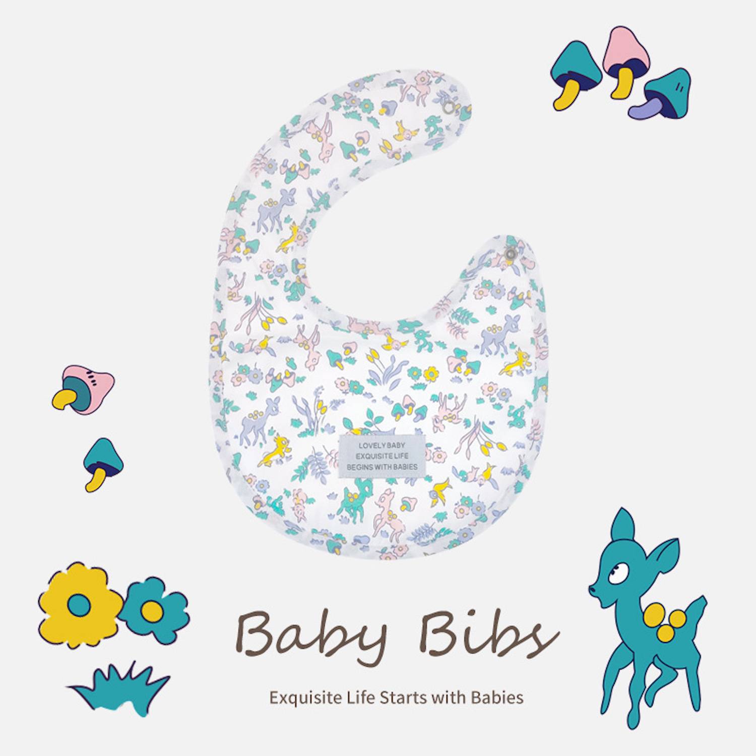 Soft, absorbent baby bib (13.5×11.6 in.), machine washable, with TPU layer to block leaks. Adjustable fit for secure.