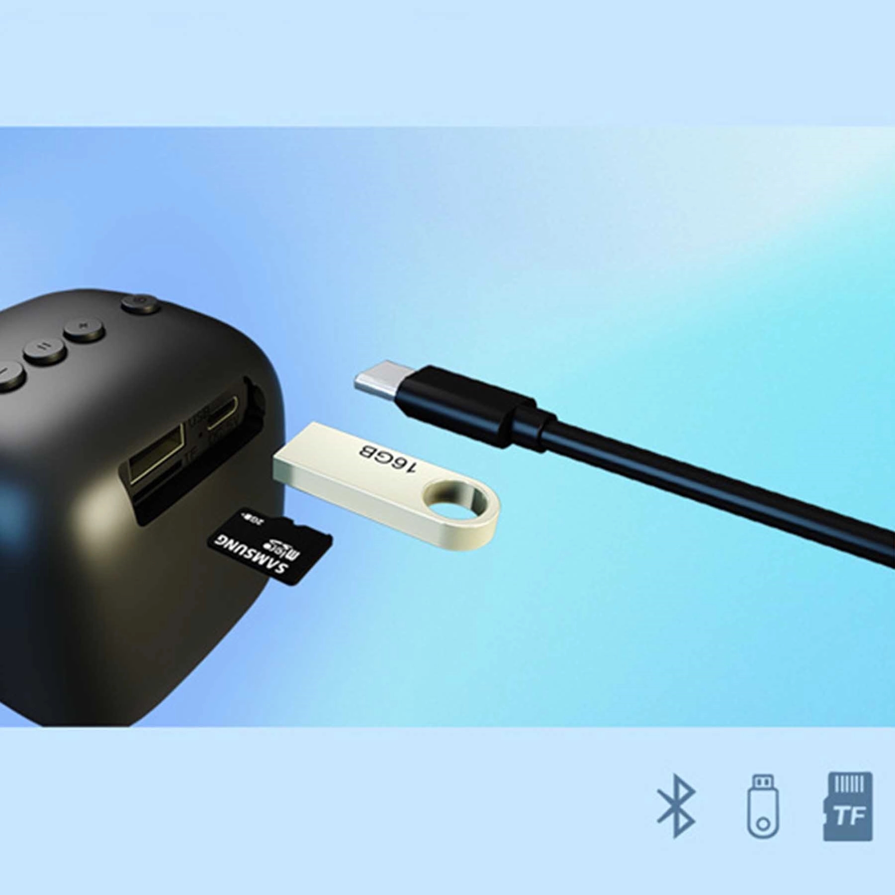 Waterproof and portable, it has playback up to 12 hours on a fully charged lithium battery so you can keep the party going.Just connect to any USB/SD Card/Bluetooth port for music playing. The bluetooth speaker can be easily connected by your smartphone, tablet or other. The silicone Bluetooth-enabled device within 33ft. Support U disk, TF card. Battery: 500mAh