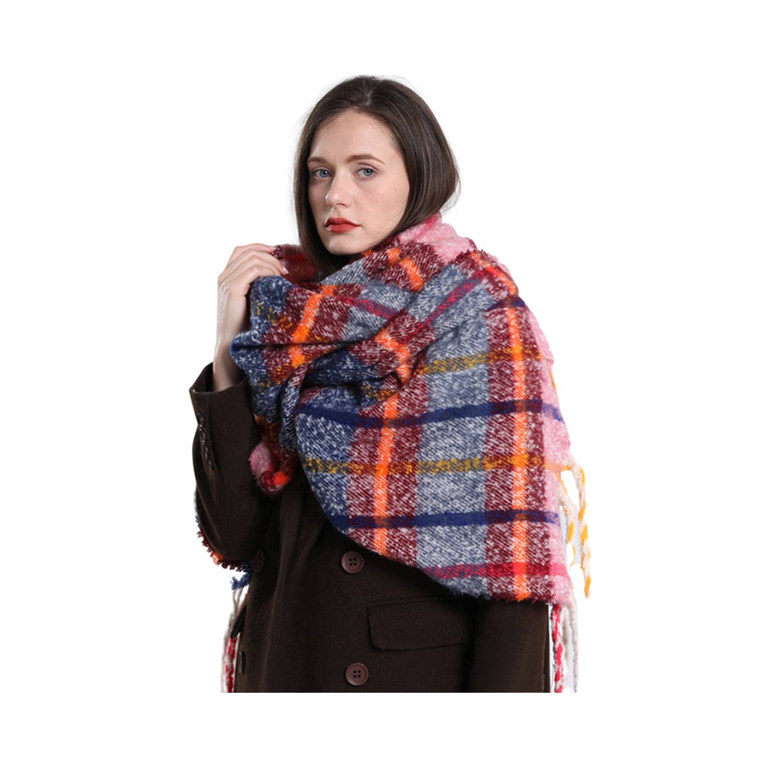 The fashionable and cozy AC Warm Rainbow-Colored Plaid Long Scarf, crafted from luxurious and ultra-soft mohair for a truly elegant and warm addition to your fall and winter wardrobe. This scarf is perfect for embracing the trendy European and American aesthetics while keeping you stylishly bundled up during the colder months. Made from premium mohair, this scarf boasts a buttery soft texture that feels delightful against your skin.