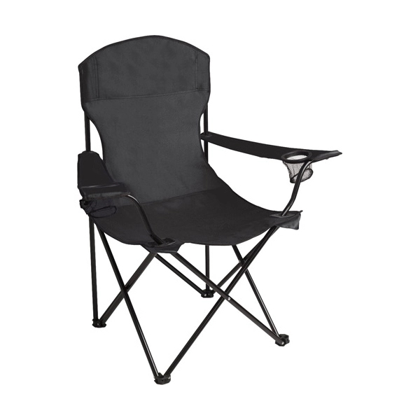 The captain’s chair features durable 600D polyester construction and Powder-Coated Steel. Two mesh can holders (one in each arm rest). A 210D polyester carrying bag with a strap and a drawstring closure. A 300-pound weight capacity. Price includes 1color imprint on chair and 1color logo on carrying bag. Main Product: 36.5″ H x 33″ W x 21″ D. Folded in Case: 7″ H x 35″ W x 5.5″ D.