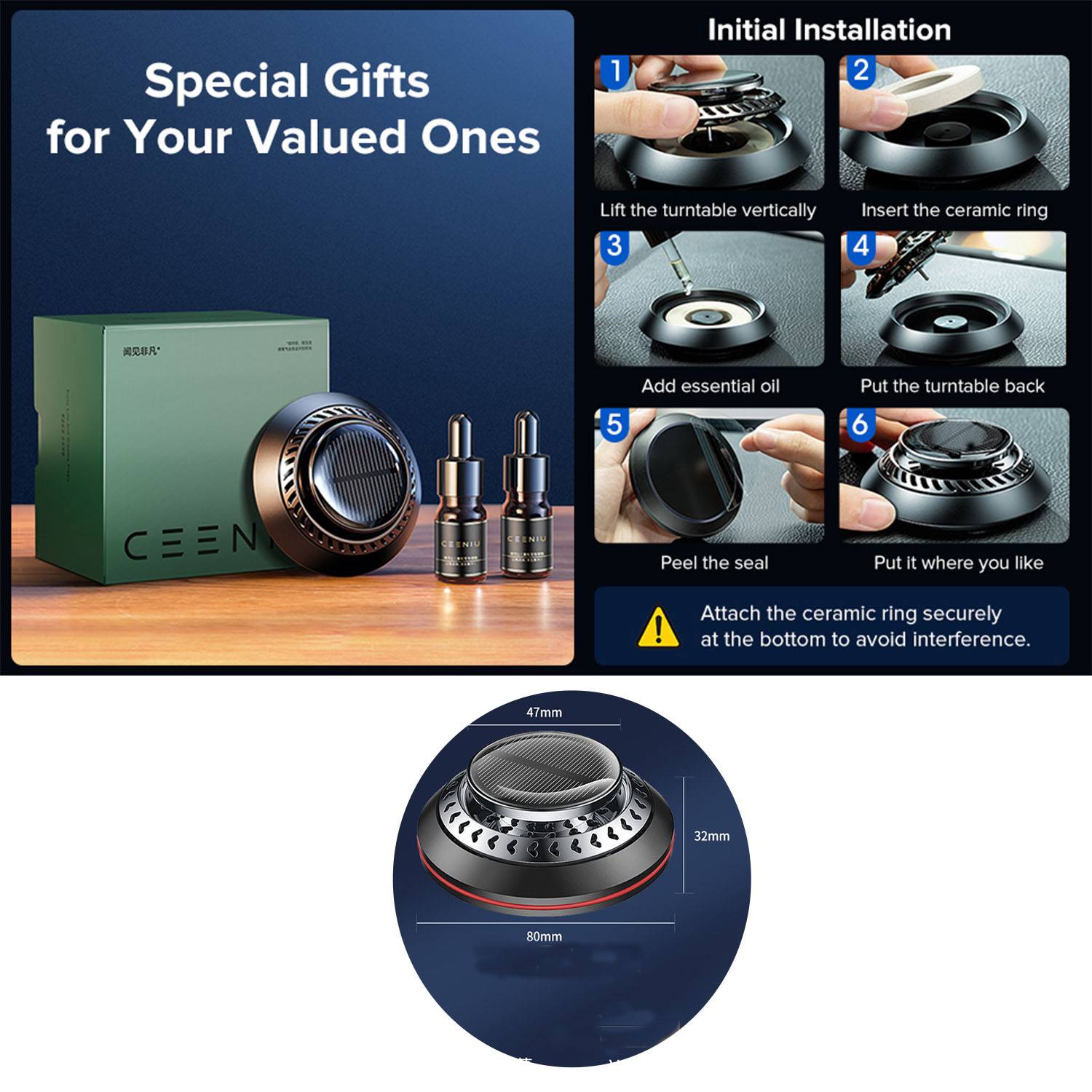 High-Speed and Silent Operation: The car fresheners features a German-made, solar-powered silent motor that can diffuse fragrances at speeds of up to 500 rotations per minute under sunlight, while producing a noise level of under 30dB, making it completely inaudible. Reason to Choose : Natural Fragrances: Only 100% natural fragrances are used. The product has obtained SGS non-toxic certification, ensuring that it is safe to use even for pregnant women and babies.