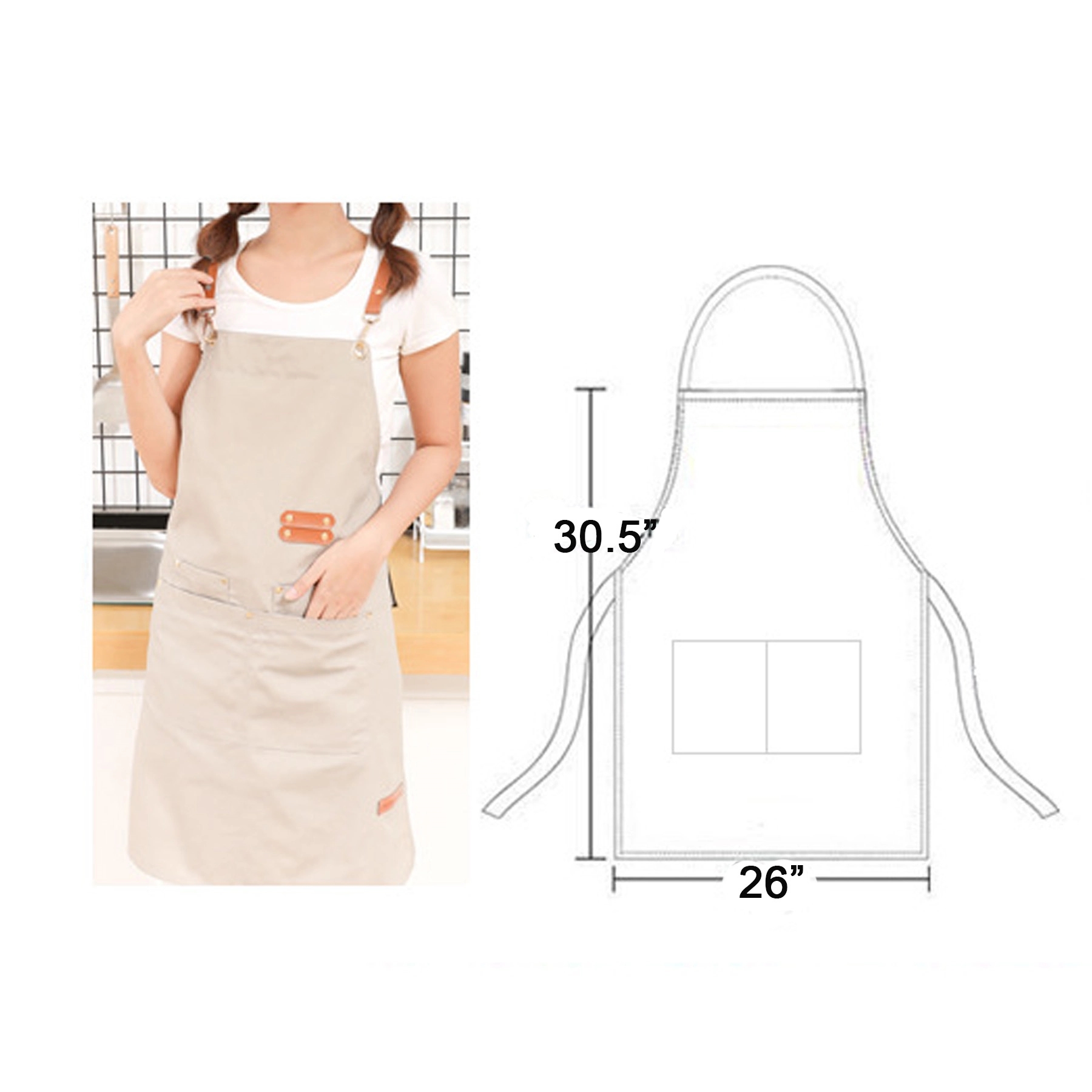 Canvas Apron handcrafted from 100% soft cotton, no smell, environment protection. Exquisite hardware buckle. Pocket corners are reinforced with metal rivets, durable. It looks really stylish. Cross back strap design, can prevent neck pain. Cotton strap and waistband, you can adjust the length to fit you, soft and comfortable to wear. Chef Apron with pockets in the front design. Convenient for you to store gadgets. For professional and commercial use in daily life. Perfect for home, kitchen, restaurant, salon, cosmetology, coffee shop, flower shop, bar, bistro, farmhouse, garden, etc.