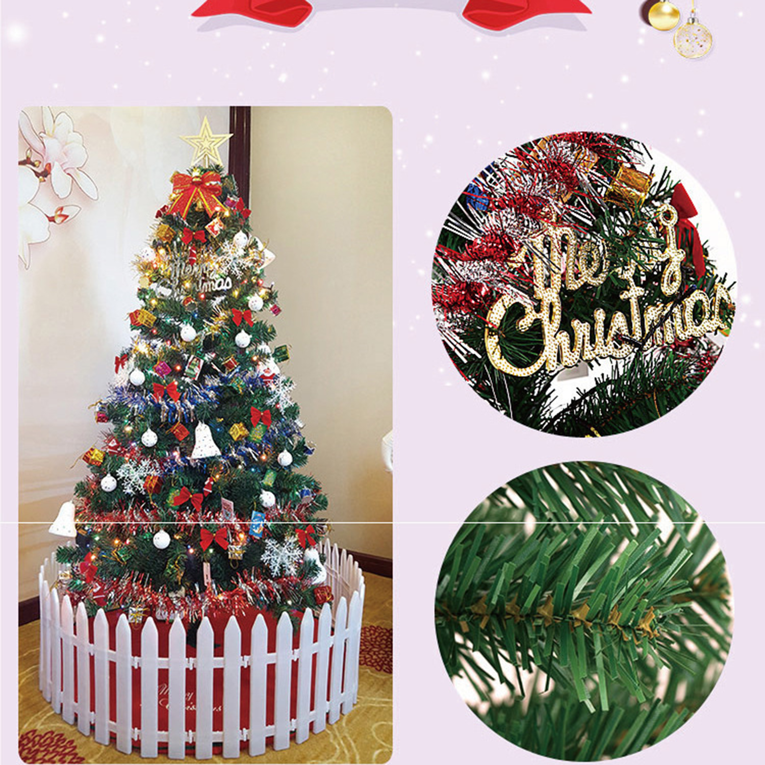 1.5m Tree Kit: 108 Orns, LED Lights, Easy Setup, Festive!