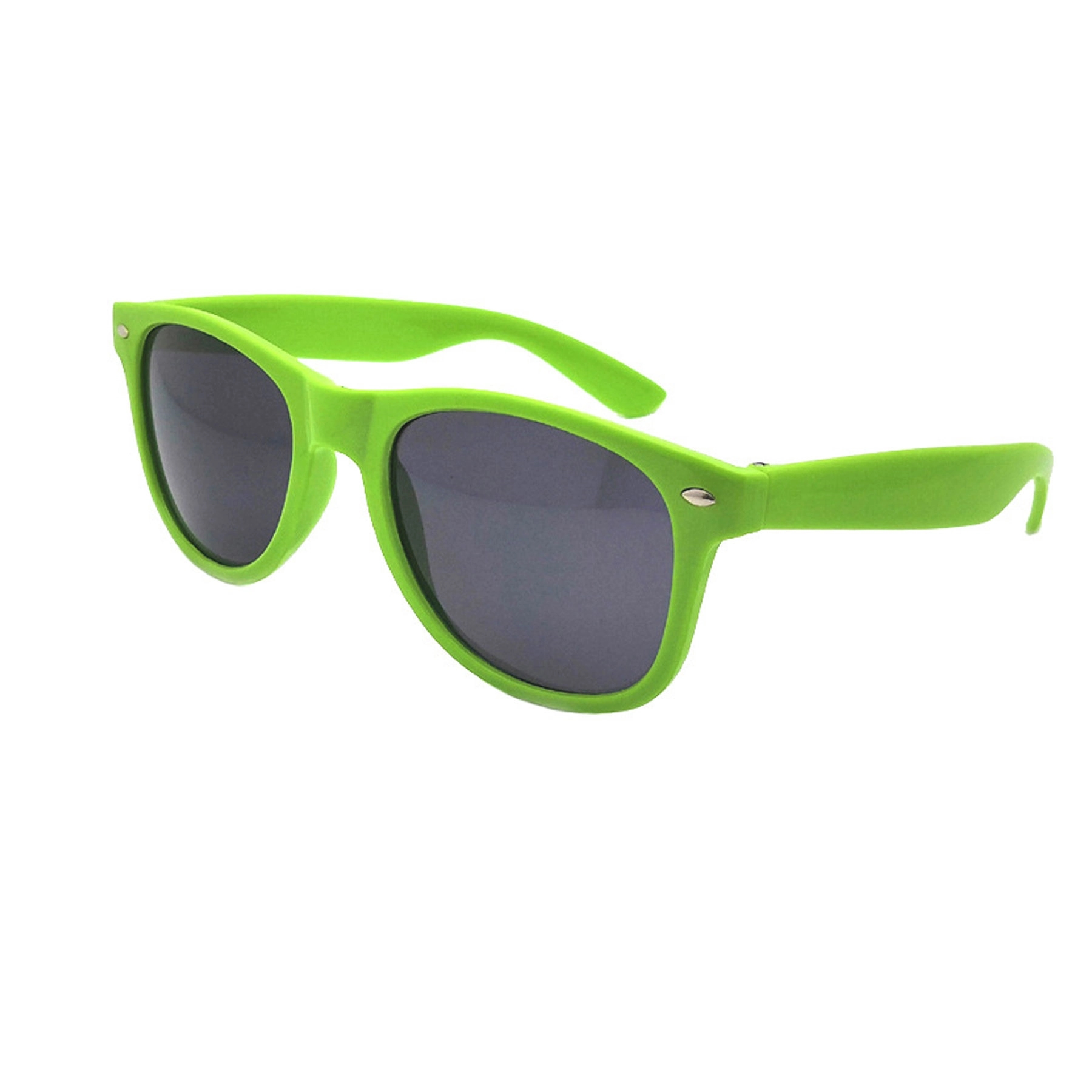 The retro sunglasses is made of UV400 protective durable drop-tested PC lens, polycarbonate frames. One size fits most. Many colors for option. Your price includes a one-color imprint on the leg and freight.