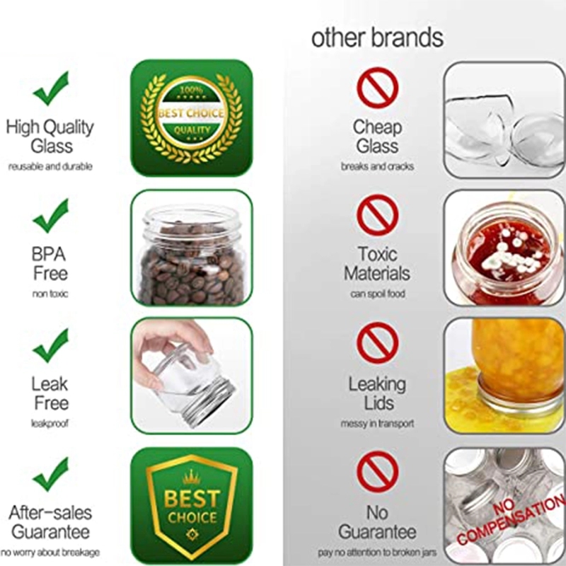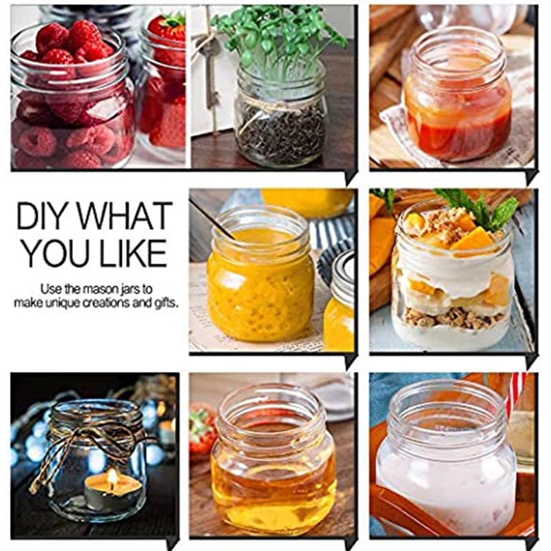 High Quality ,8oz / 250ml Food Grade Glass Body with Lab Certified Corrosion-Resistant silver lids, great for food storage.