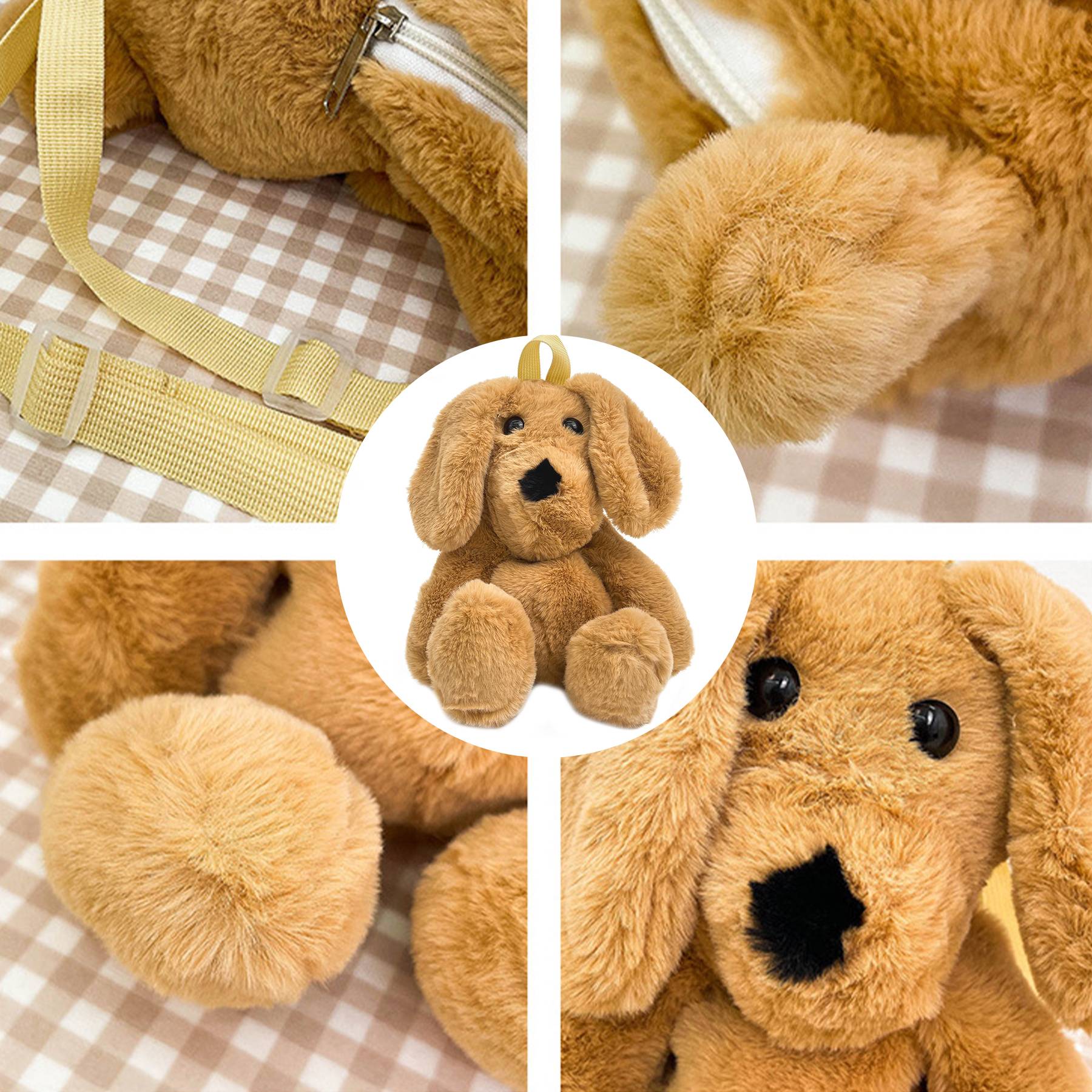 The design of this Muppet dog bag is cute. Zipper portable design for tight fixation. The perfect gift for a girl who loves bears. The small back pocket is great for storing keys or other small items, and the head pocket is spacious enough to store wallets, cell phones, snacks, toys, and more. The size is 11.4*3.1*14.2 inches. Made of high-quality, safe and environmentally friendly soft plush fabric + PP cotton filler. Super soft and smooth. Can be washed. It is not easy to fall off and fluffy.