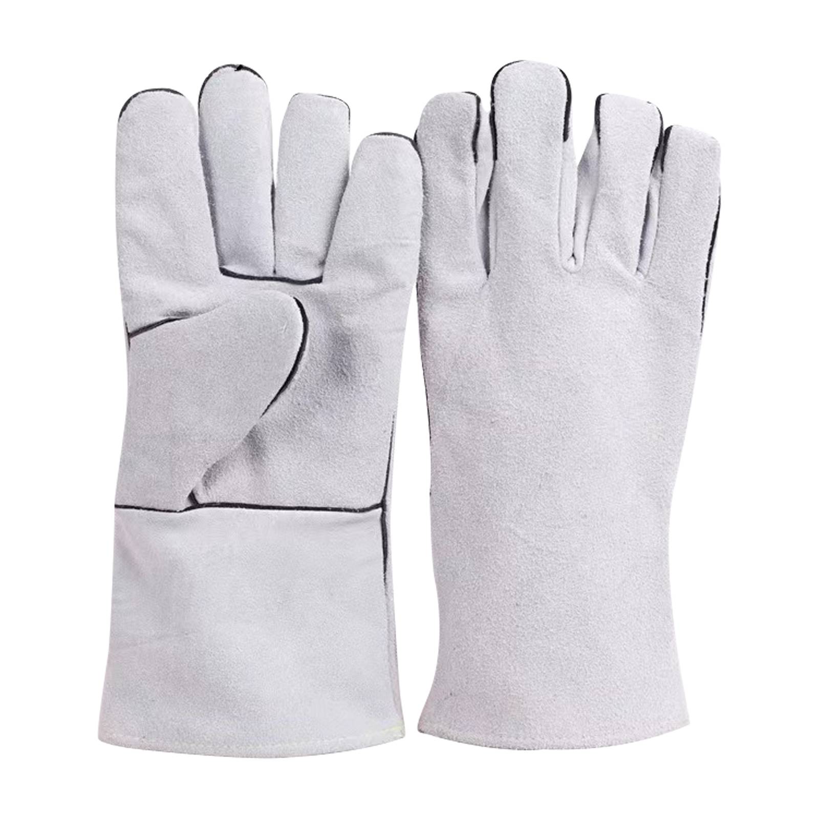 Full cow split leather back till the cuff. Unlike other stiff welding gloves, these gloves are softer. Heat and flame resistant for all types of welding.FLEXIBLE DESIGN. Reinforced Wing thumb design for maximum flexibility. It means holding items and operate easily.HEAT RESISTANT. Cotton liner and Canvas cuff for heat insulation, absorb sweat and added comfort.MORE DURABLE. Locked stitched for added strength. Swen with strong, heat resistant US Kevlar thread.