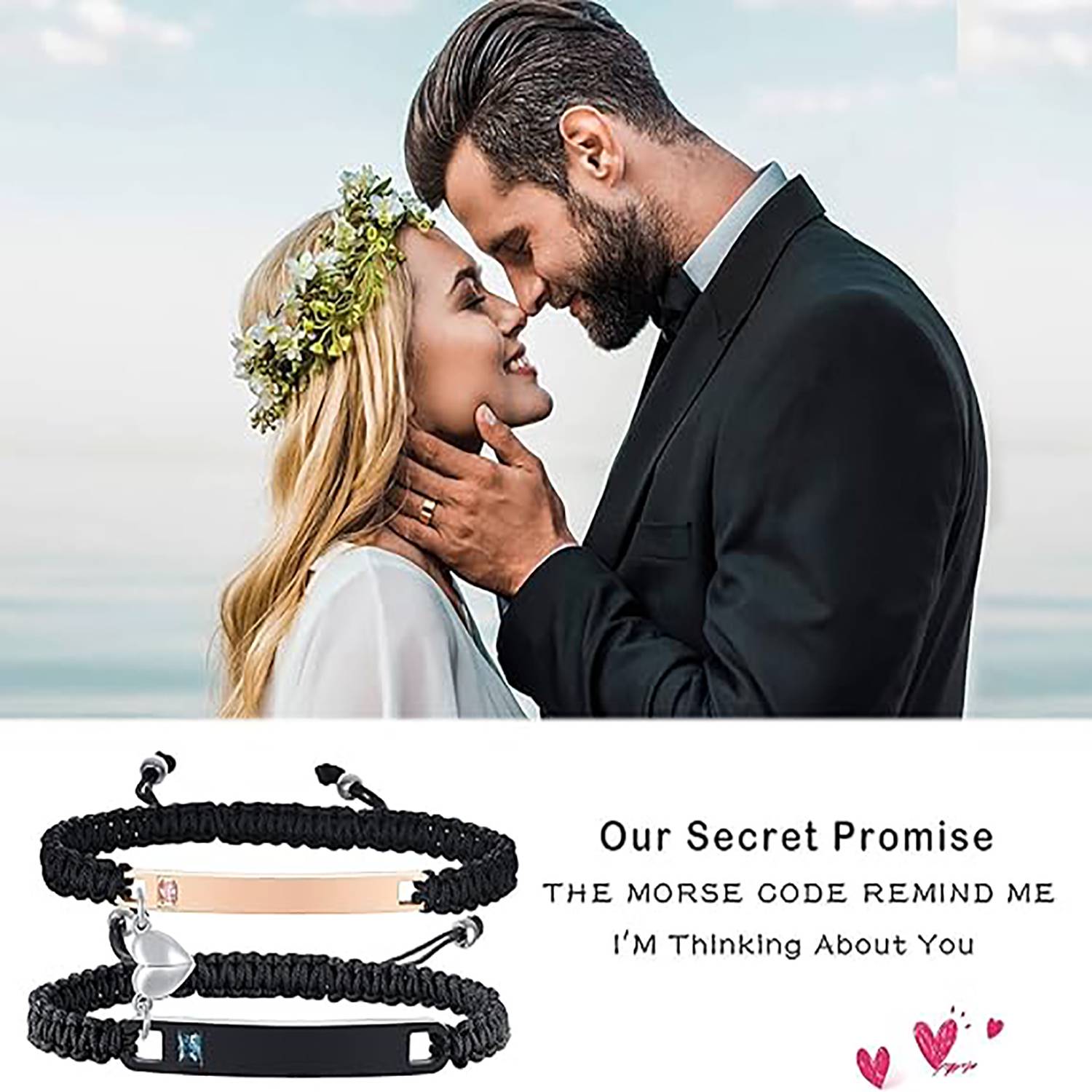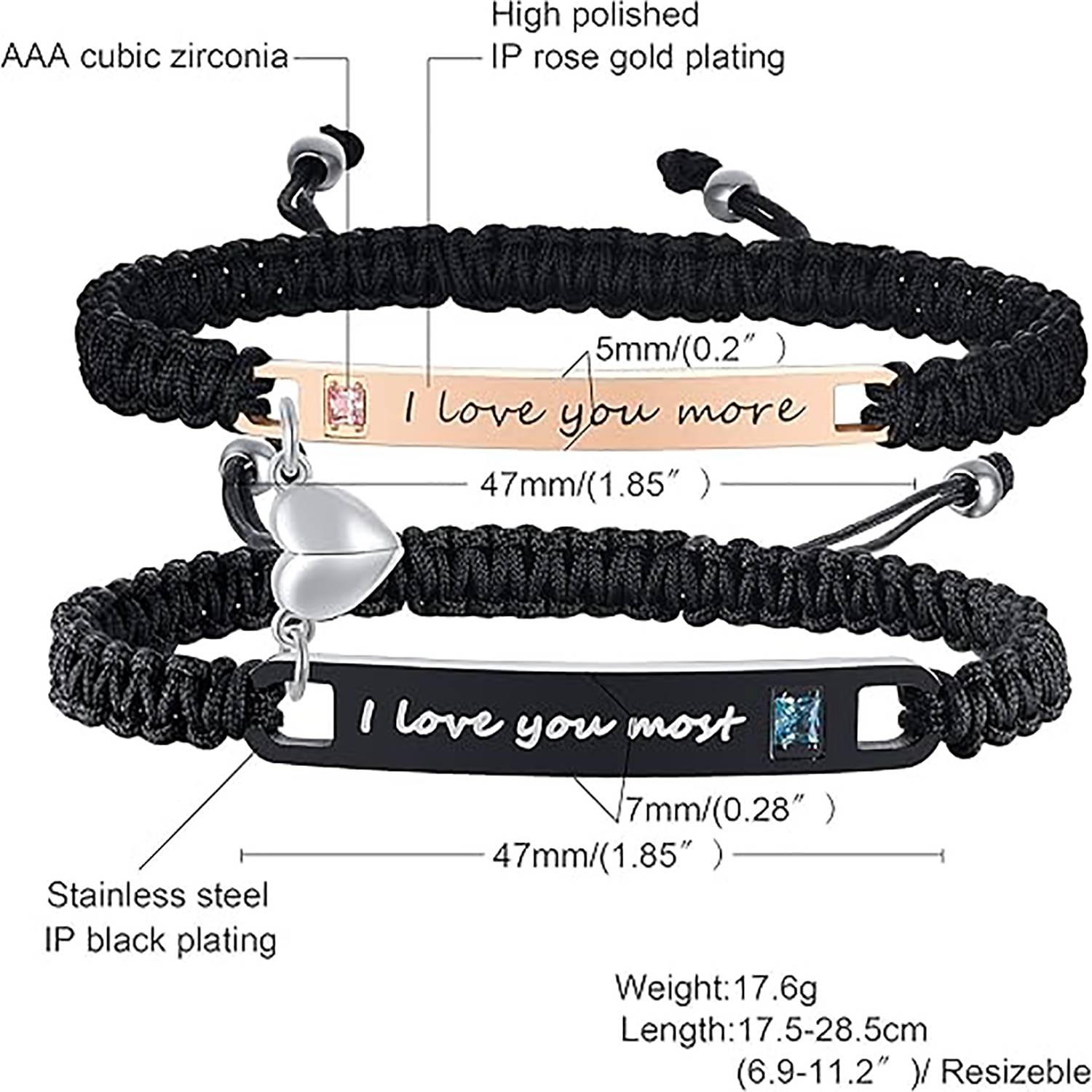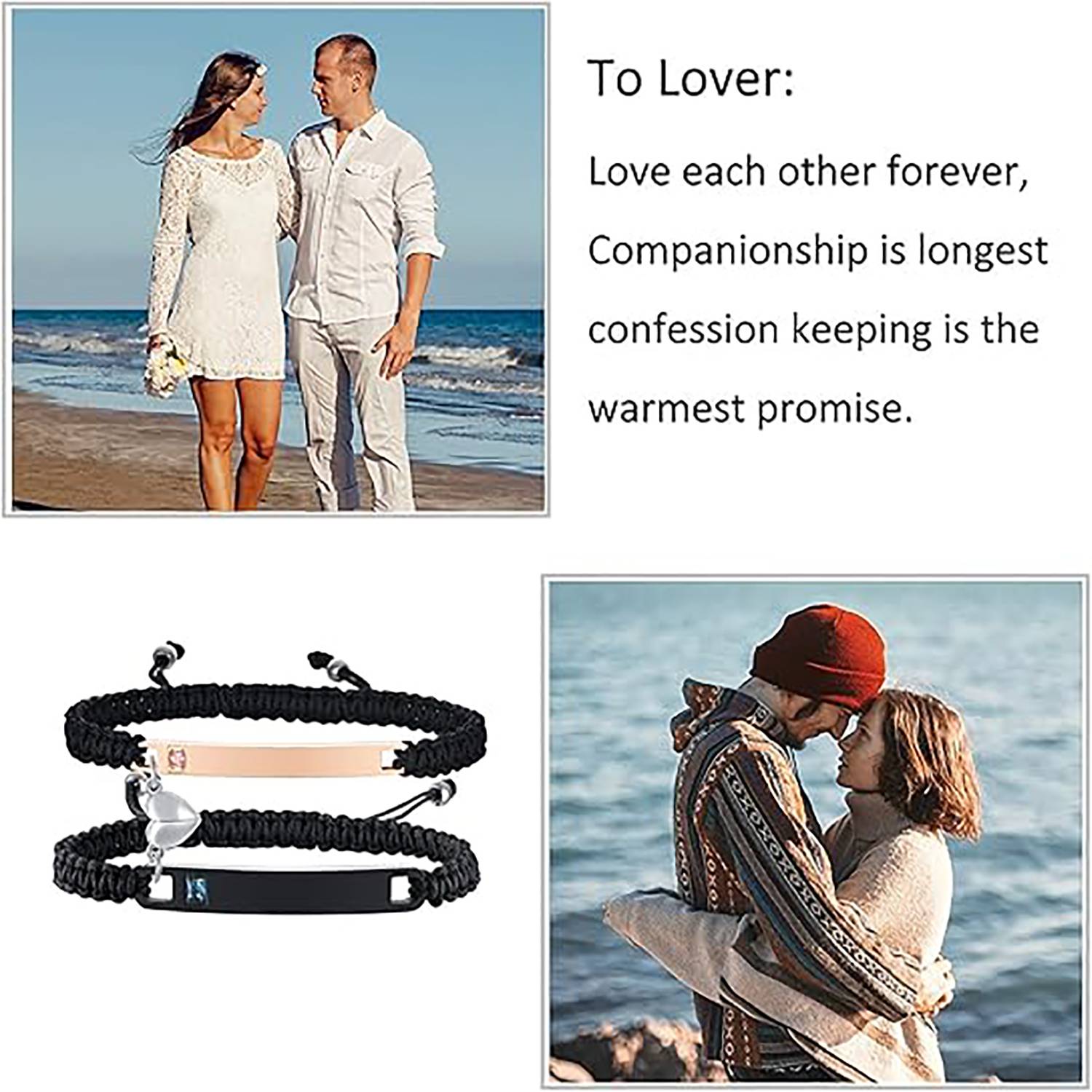 This couple bracelet set features a durable stainless steel curved plate design with heart-shaped magnetic inlaid stones and offers customizable engraving options, perfect for travel keepsakes or romantic gifts. The adjustable bracelet (6.9-11.2in) ensures a comfortable fit for most wrist sizes, while the stainless steel offers corrosion resistance and skin-friendly safety. Ideal for couples seeking a meaningful yet practical accessory.