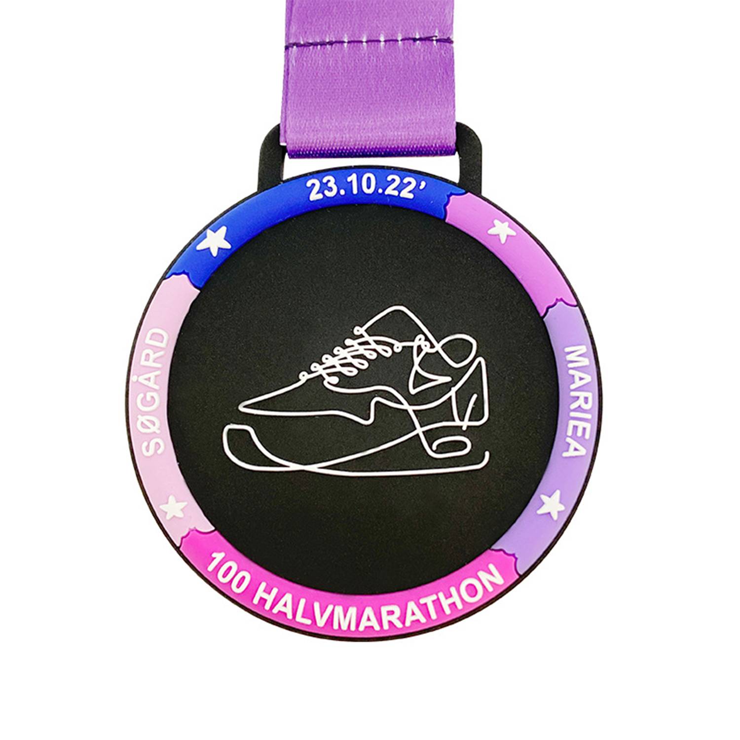 Everyone is sure to feel like a champion when you hand out these colorful, flexible and fun PVC medals. Made of non-toxic PVC, each medal is custom molded with incredible detail in a two-dimensional imprint with up to six molded colors. Free PMS color matching is included. Top off your award presentation by adding an optional custom medal neck ribbon. A colorful idea for charity runs, intramural sports and much more.