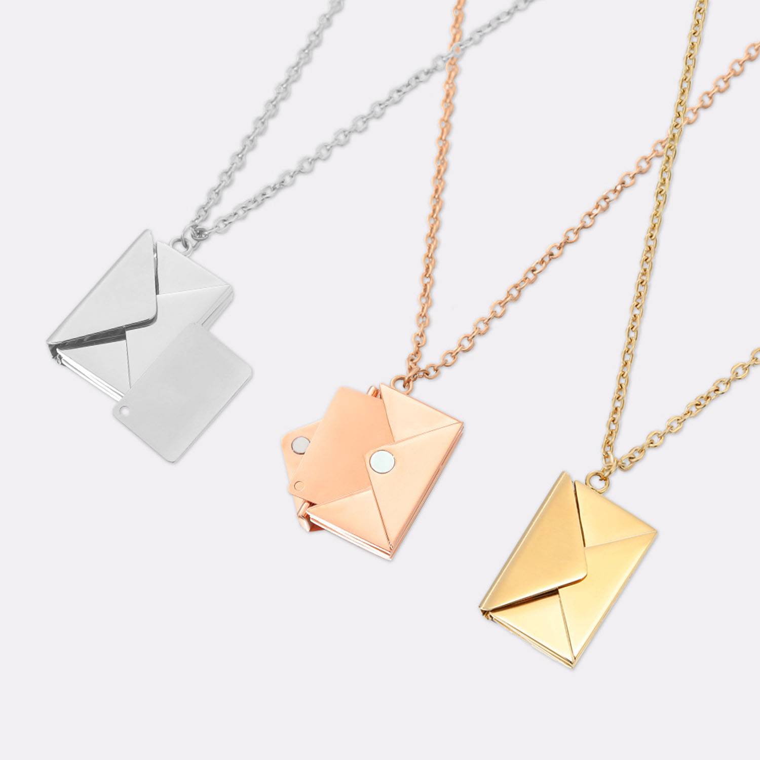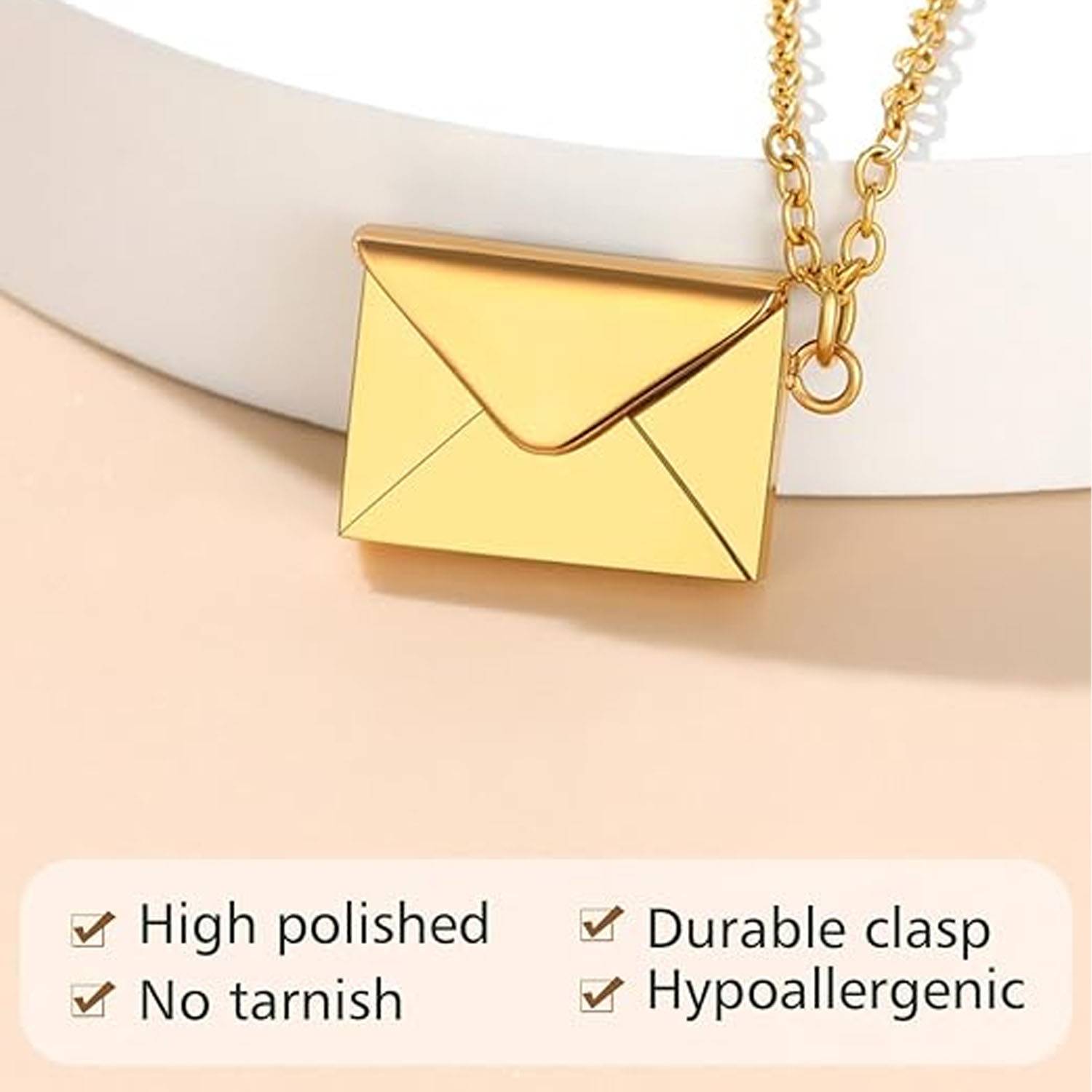 Indulge in the charm of a custom envelope necklace – a one-of-a-kind necklace, this modern tribute to the classic love letter will keep precious memories close to your heart. Each necklace offers the option of personalized engraving, perfect for a heartfelt message or quote. Made of durable stainless steel with a polished finish, it combines elegance with practicality. Ideal for birthdays, anniversaries or as a special keepsake, this necklace makes for a meaningful and versatile gift.