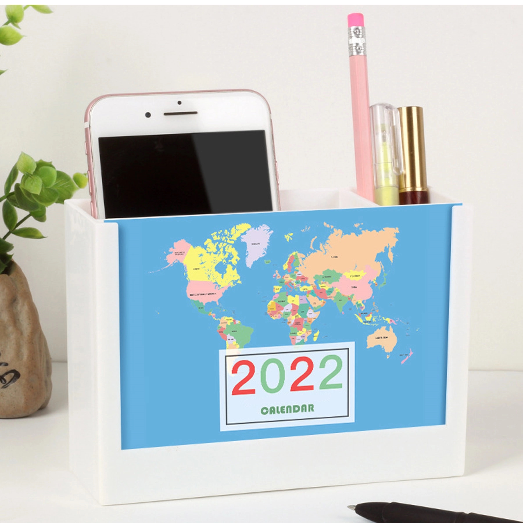 Make your office desk sparkle with this beautiful desk organizer and calendar! This 6″ x 4.3″ x 2.1″ product is made of high-quality PP plastic and includes two compartments for storing your pens, pencils, sticky notes, markers, and other office necessities. Also featured is a 12-month calendar for keeping track of the days. Additionally, if you have a family photo that you’d like to advertise then you can easily do so with the included frame. Order this eye-catching product while you can!