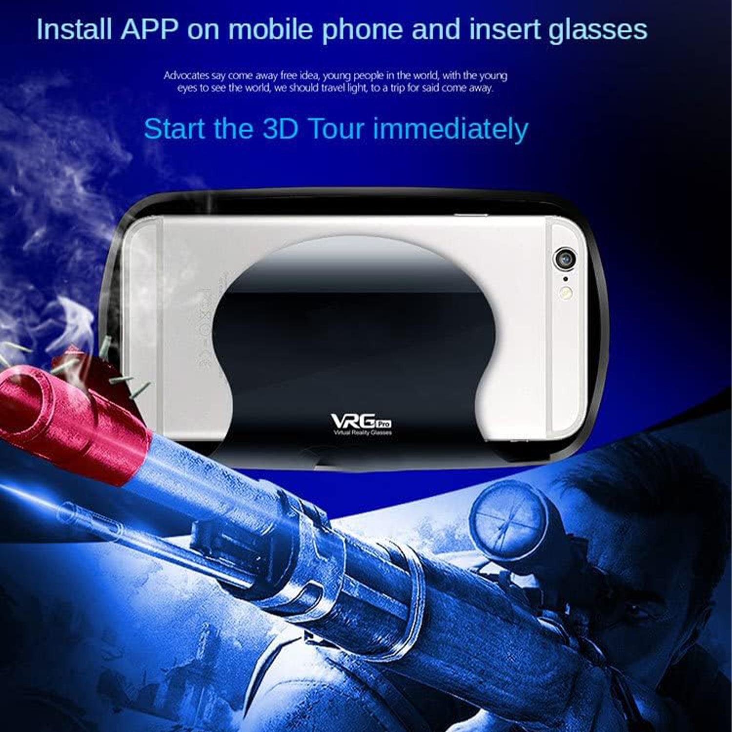 VR Headset with detachable large screen frame supports mobile phones from small to 5-7 inches. Independent lens and pupil/object distance adjustments allow myopia users. The 120-degree wide-angle lens offers immersive experience. Pair with a handle for panoramic 3D world. Removable, soft sponge eye mask fits comfortably and is easy to clean. Lightweight design and sleek appearance make it easy to carry.