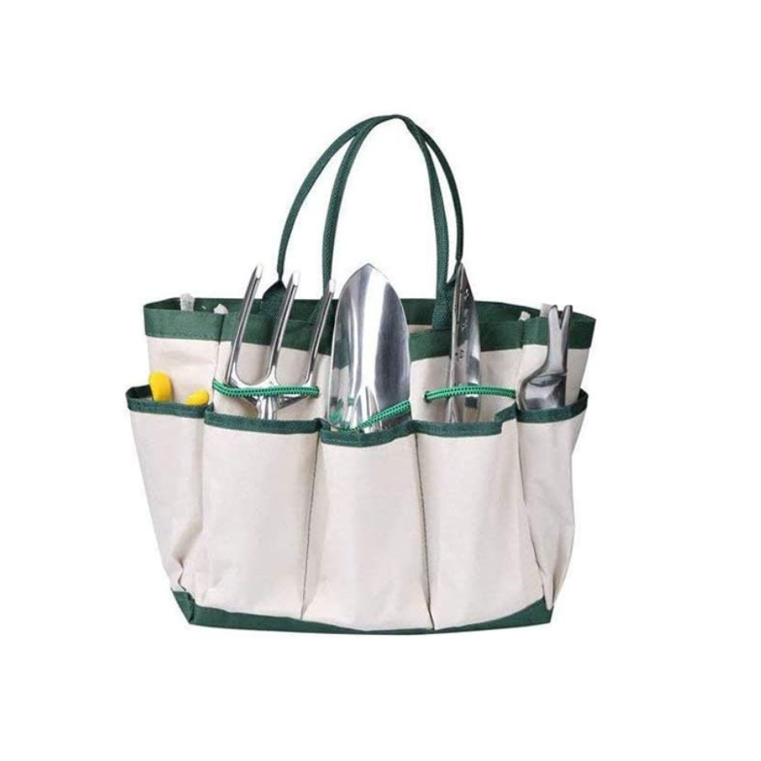 Gardening tool set with tote bag, stainless steel & aluminum, ideal gift for gardeners.