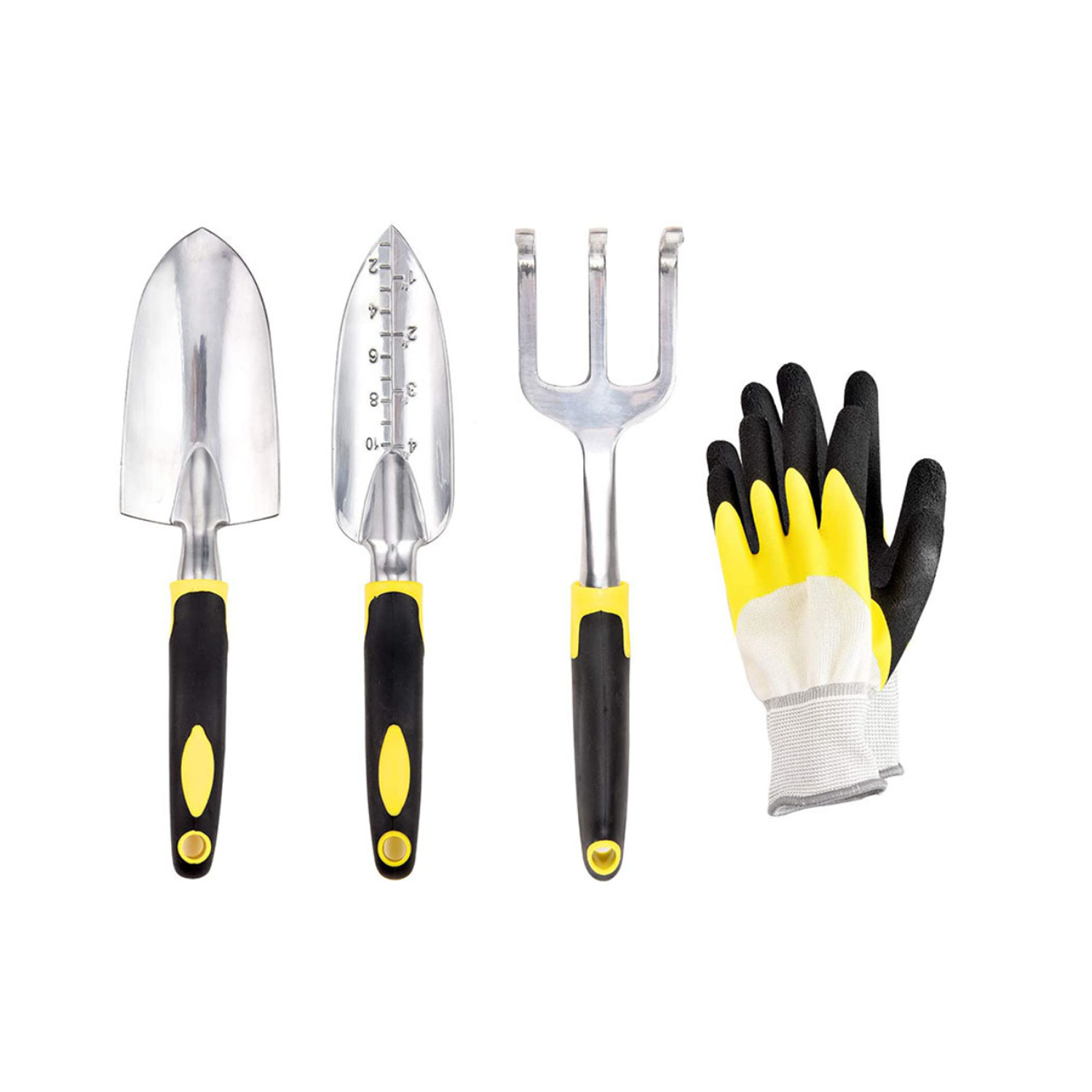 This gardening tool set includes gloves, scoop, trowel, cultivator, rake, pruner, weeder, knife, saw, and tote bag. Ideal for indoor/outdoor gardening tasks like digging, weeding, pruning. Made of stainless steel and aluminum alloy, sturdy and corrosion-resistant. Ergonomic handles ensure comfort. The tote bag is stylish and spacious for tool storage. Perfect gift for gardeners.