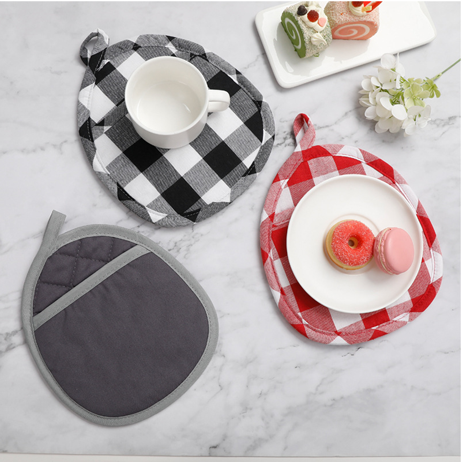 Oven mitts block temps up to 500°F/260°C with durable construction, protecting from burns during cooking & grilling. Featuring soft cotton lining, they offer extra protection, comfort, & easy cleaning/storage. Hangable, they conserve space & maintain kitchen aesthetics. With food-grade silicone texture & non-slip grip, they ensure secure handling. Made of quilted cotton, they’re comfortable, breathable, & skin-protecting. Perfect for various cooking tasks.