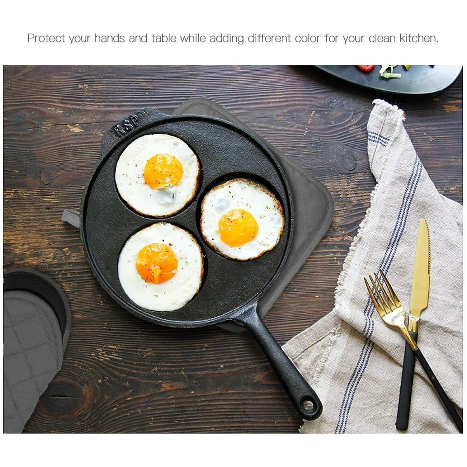 Oven mitts block heat up to 500°F, protect from burns, have soft cotton lining for comfort & easy care. Non-slip silicone.