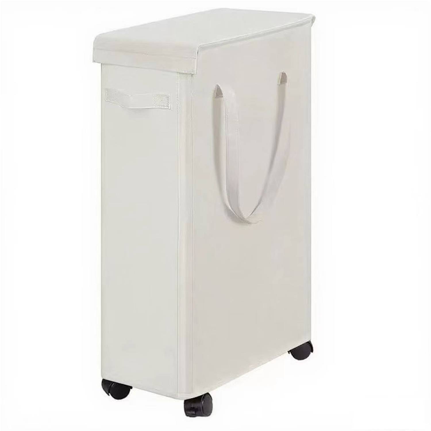 This foldable dirty cloth basket with wheels is made of cloth materials designed for everyday use. It features a secure tape closure, making it easy to open and close while keeping contents hidden from view and protected from dust. The fiber rods provide stability, ensuring the basket stays upright even when filled. Perfect for laundry rooms or bedrooms, this basket simplifies transporting clothes, making chores more efficient. Its compact design allows for easy storage when not in use.