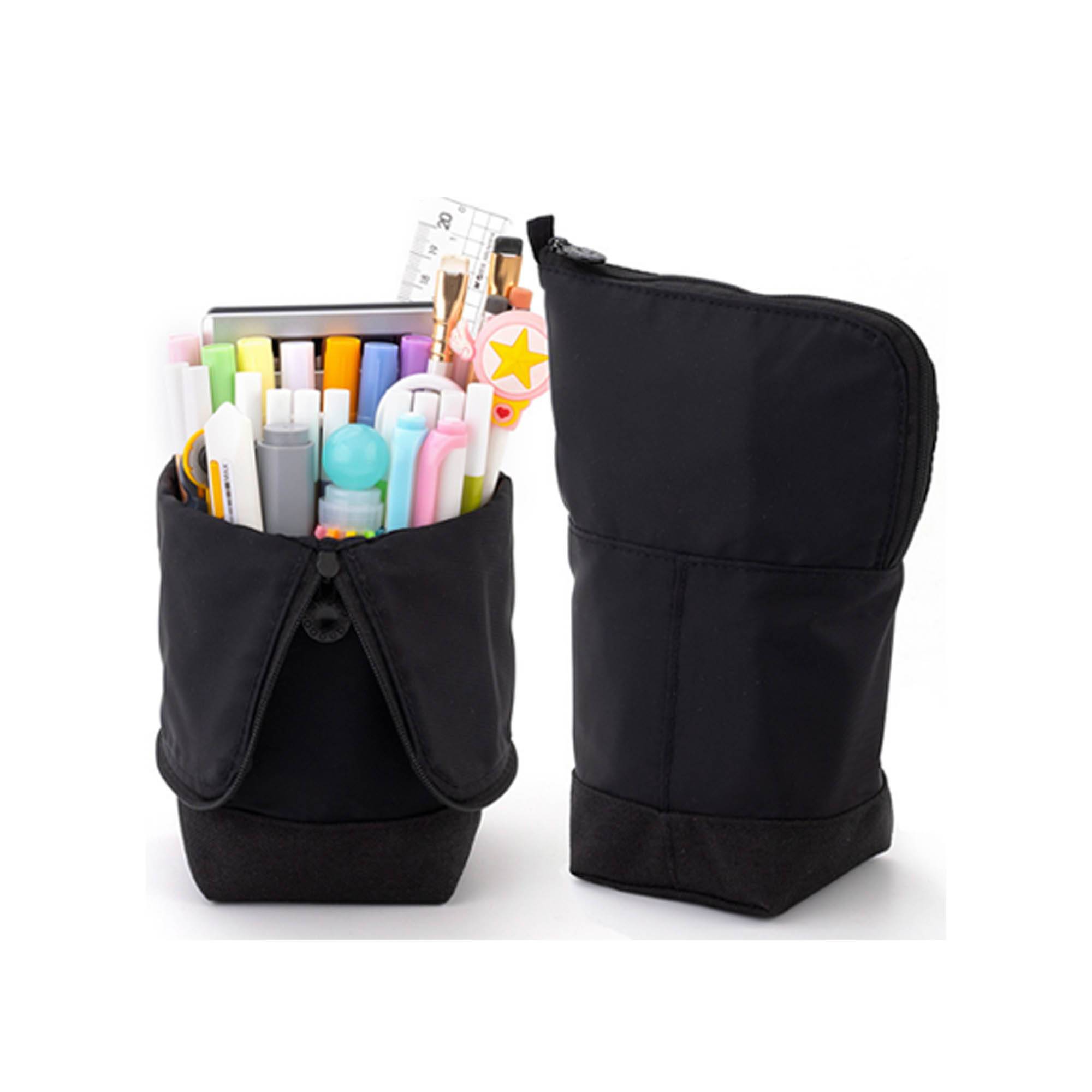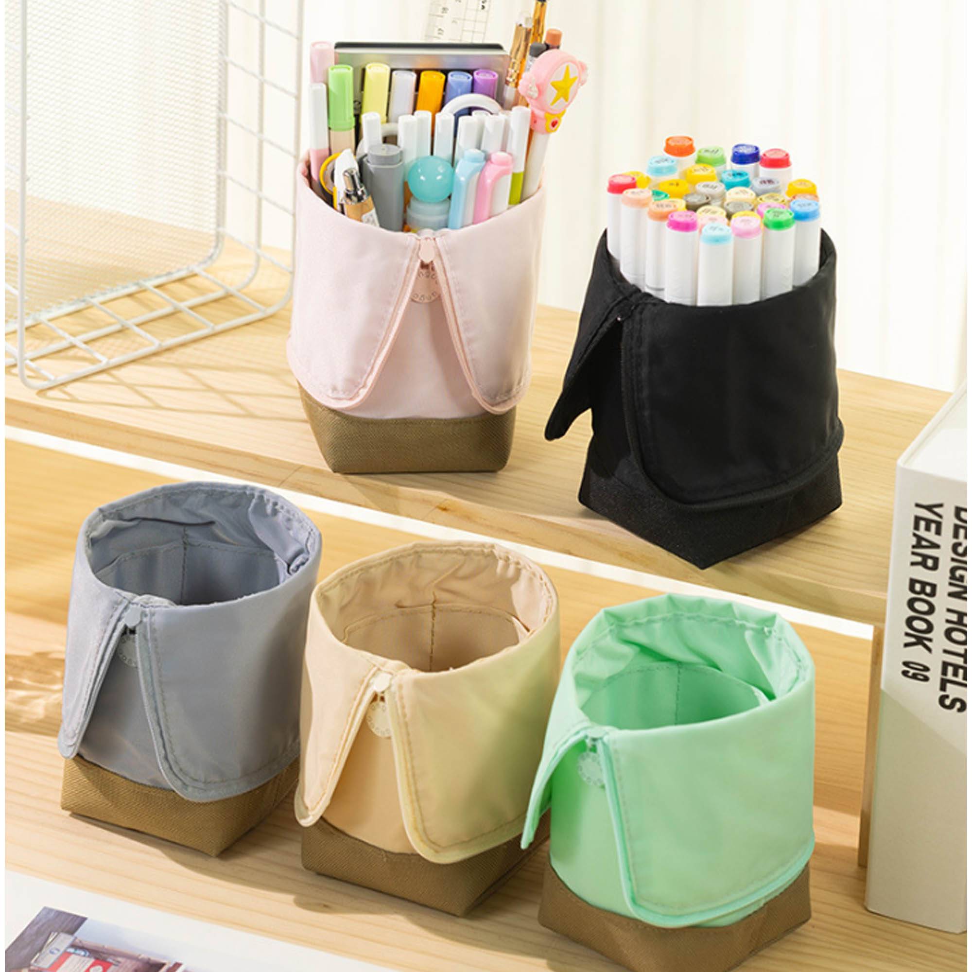 Multifunctional desktop pen holder with foldable top, ideal for keeping workspaces organized.