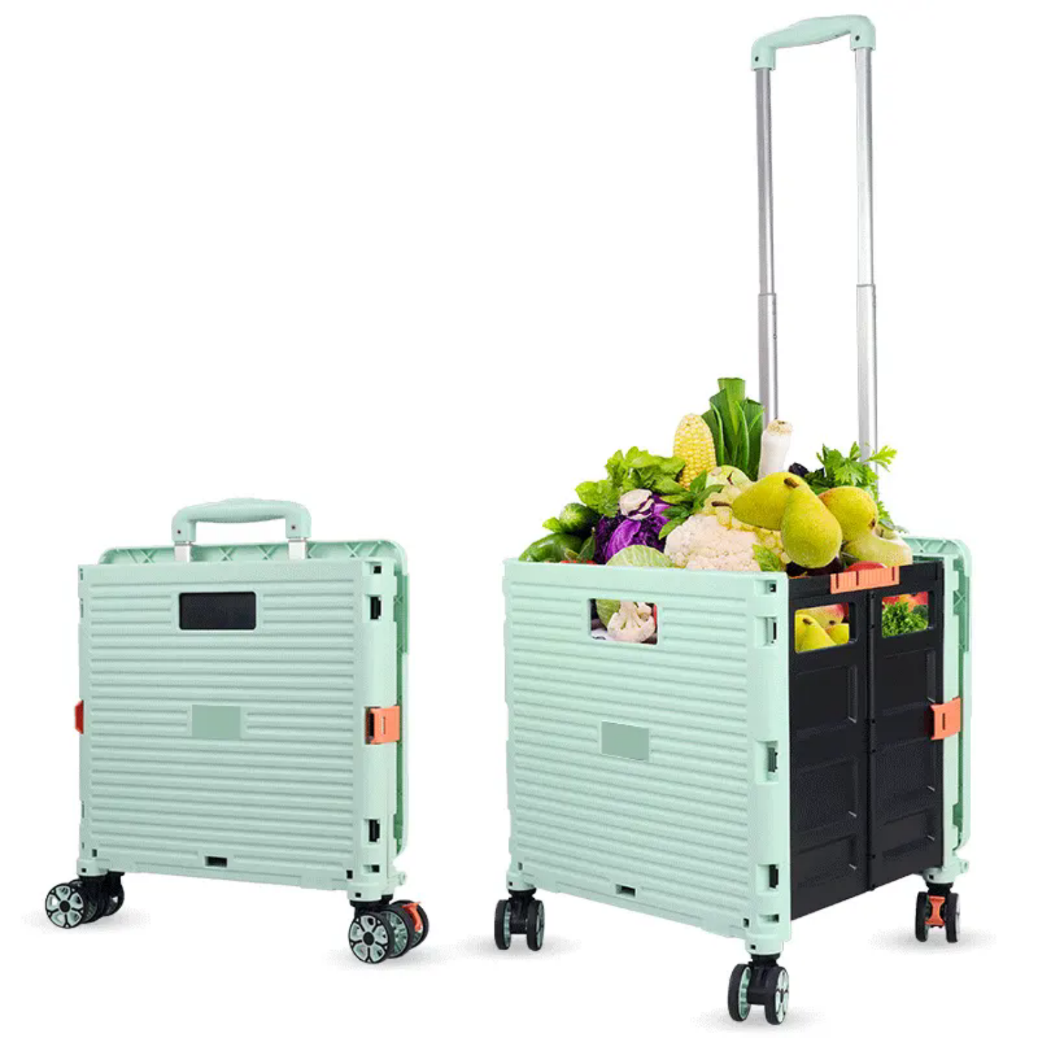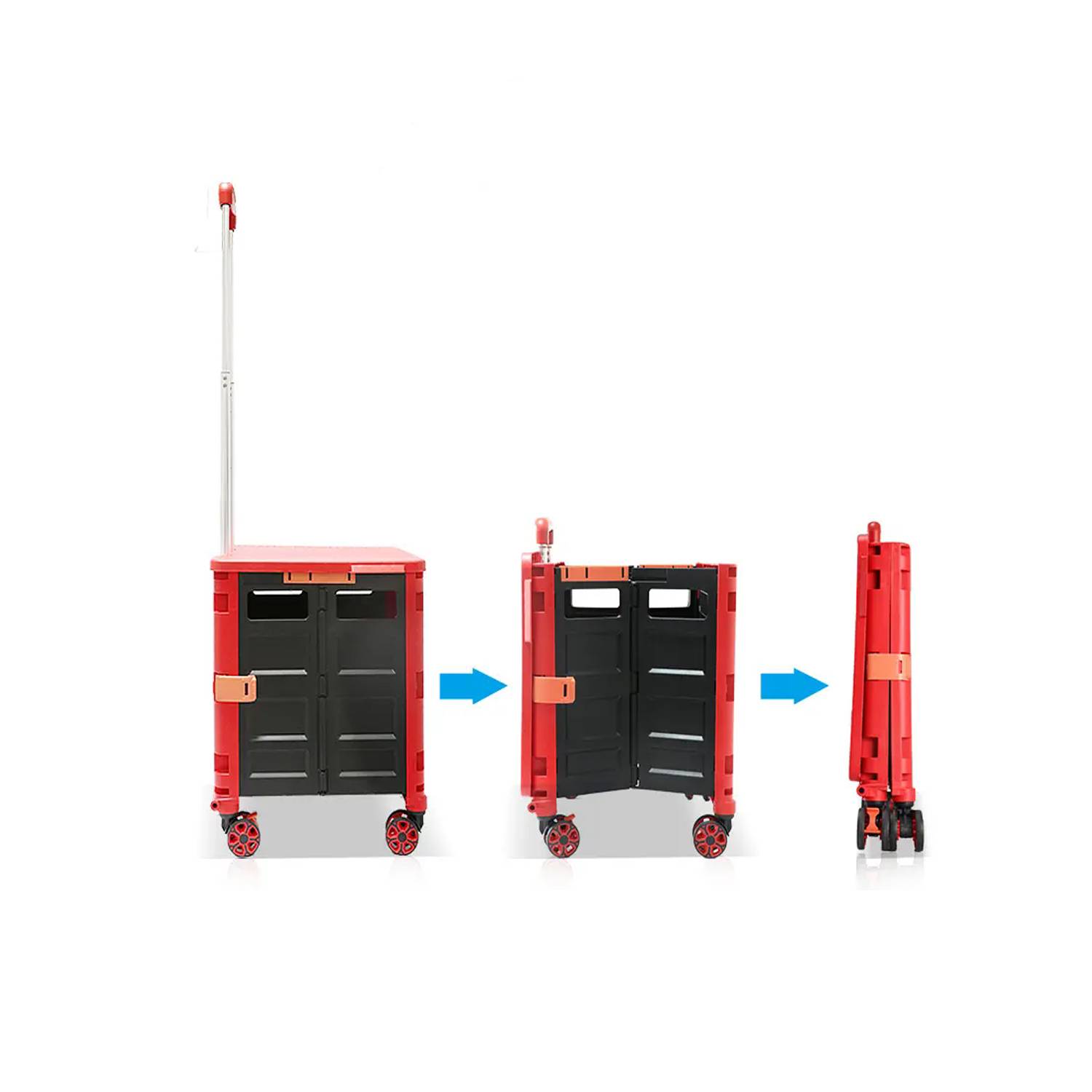 The two-wheeled collapsible handcart with retractable handle is a versatile storage solution. It folds compactly, easily loaded with boxes, files, and bulky items. Ideal for offices, schools, or home improvement,Made of aluminum and heavy-duty plastic, its wheels roll effortlessly. The lid supports doubling as a seat or stepstool. Perfect for organizing, this multi-purpose cart is an ideal gift for teachers, business agents, and handymen.You can customize your logo.