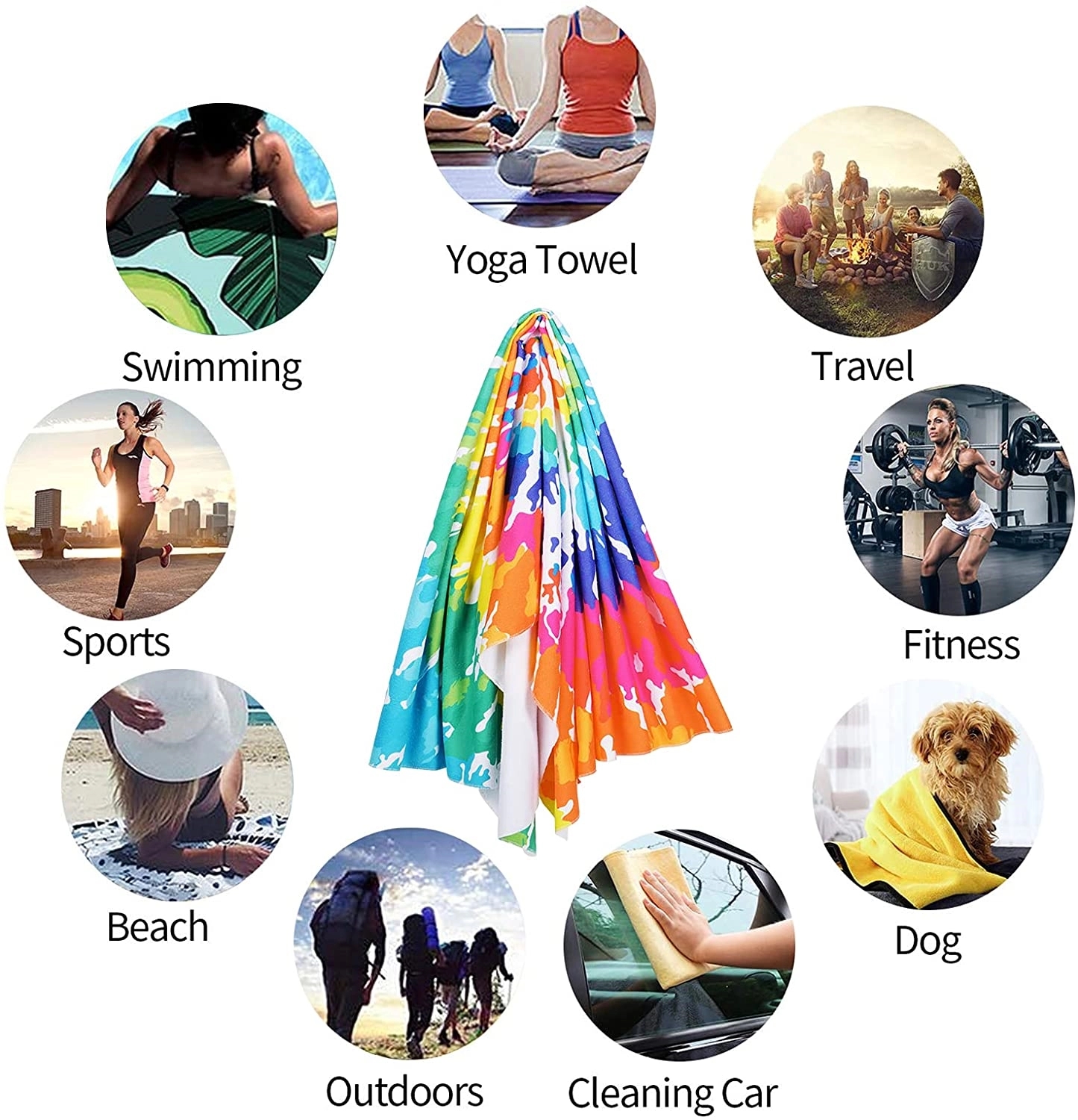 250gsm microfiber towel. After get out of the pool or the sea, our Microfiber Beach Towel will dry you fast. Can keeping you off the sand and can also double up as a blanket. Machine washable. Complies with Prop 65. 55″ W x 28″ H