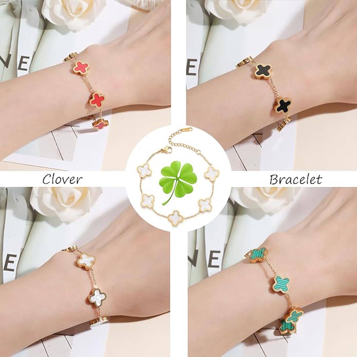 Rare four-leaf clover symbolizes luck, love, health, wealth. Stainless steel bracelet, adjustable size, perfect gift.