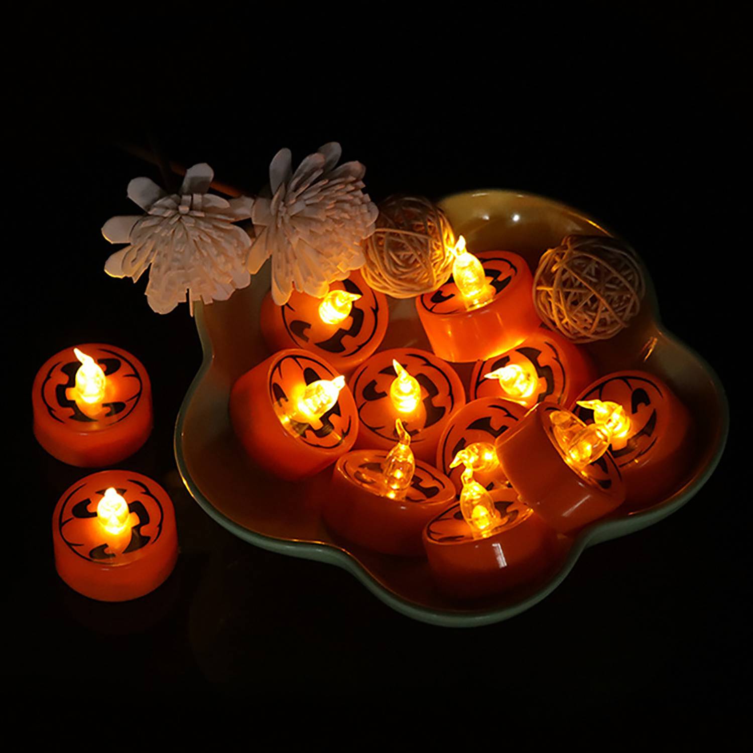 This Halloween LED jack-o-lantern is made of plastic and mimics real candles. The flameless LED wavy candles flicker like real flames without fire risk, making them safe for families with pets or children. Perfect as a mood light or night light, ideal for dining tables, home, garden, weddings, parties, and holiday decorations. Safe, decorative, and festive for Halloween celebrations.This LED candle light requires one button(CR2032) cell battery, and the product includes the battery.
