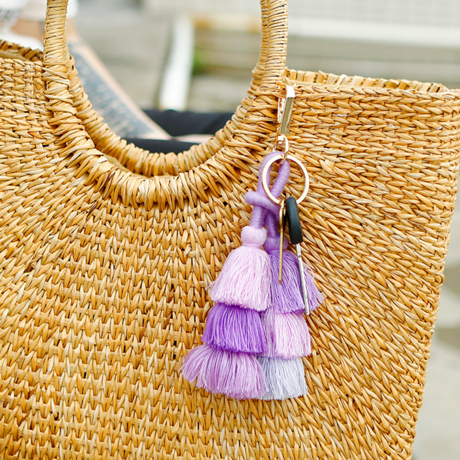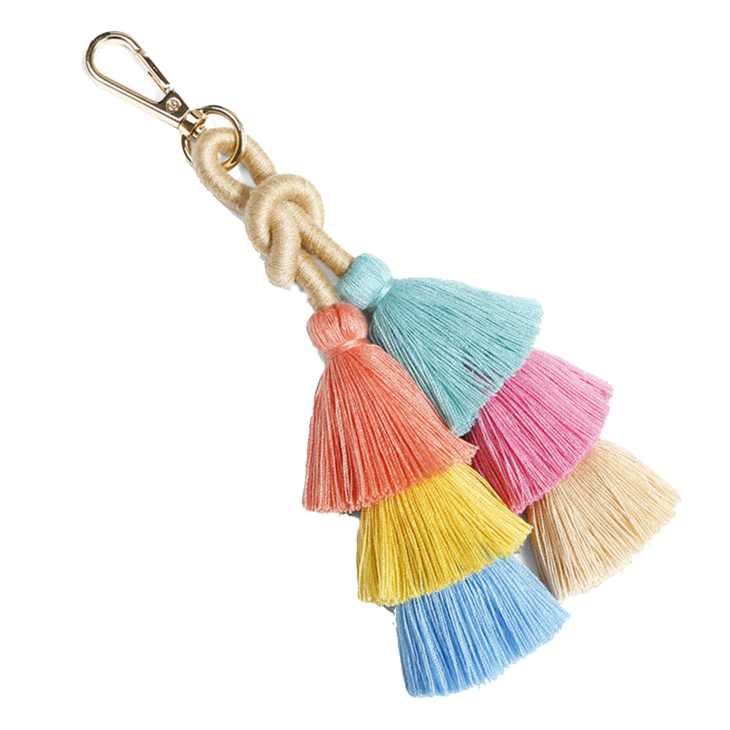 Cotton Colored Tassel Bag Charm Keychain: Soft cotton, vibrant tassels, safe, stylish, organizes keys. Great for daily use/gifts.