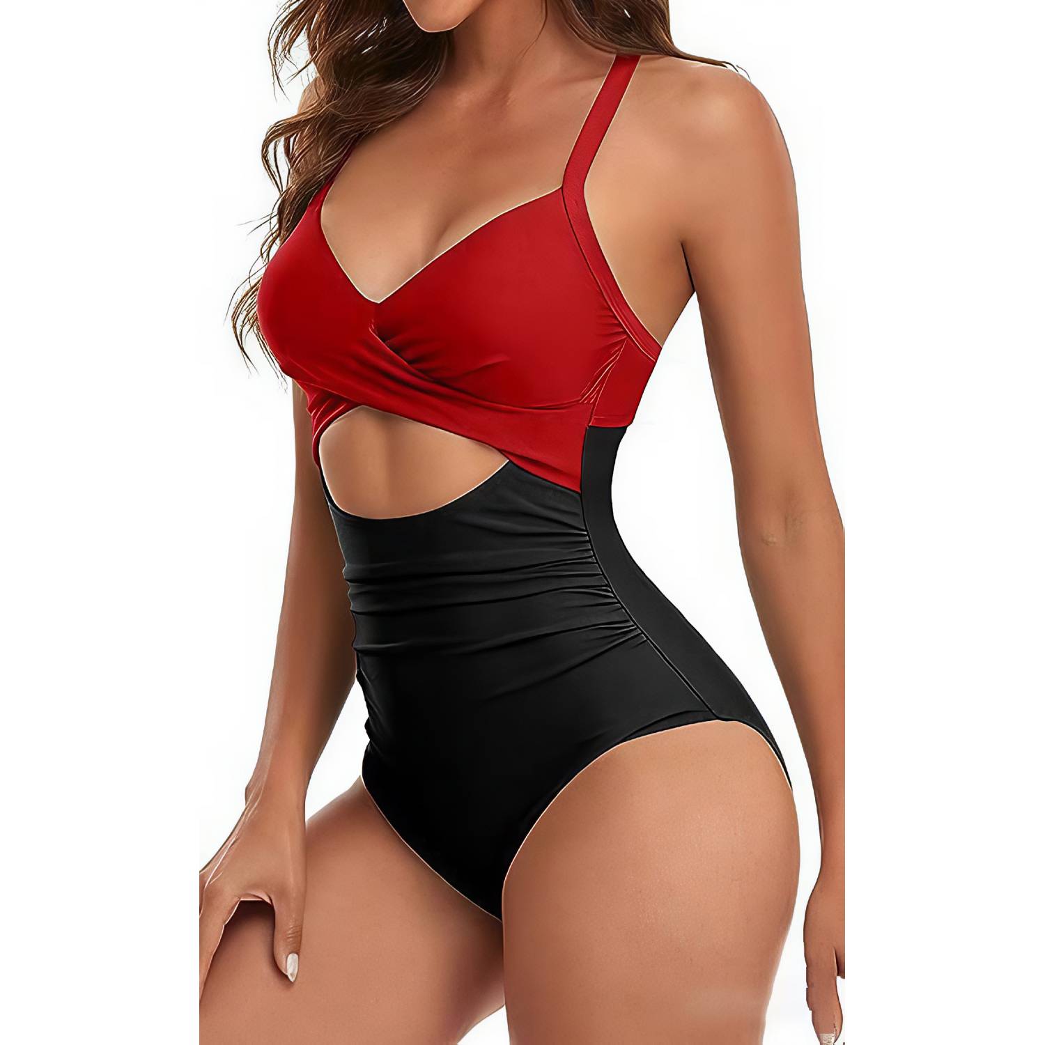 This figure-hugging one-piece swimsuit is crafted from quick-dry polyester, available in 5 sizes (S-2XL) and 10 vibrant colors, weighing 0.66 lbs.The strategic cutouts accentuate curves, the swimsuit features a daring backless cutout secured with adjustable crisscross straps.Designed with high-leg cut for elongation,the 4-way stretch fabric ensures comfort during swimming or sunbathing.Perfect for beach vacations or pool parties.