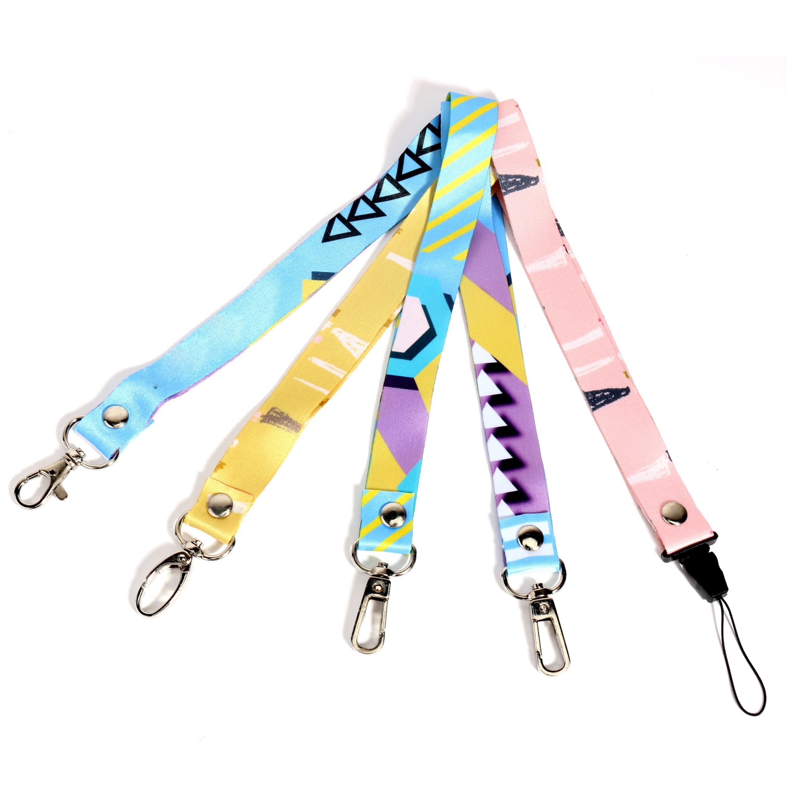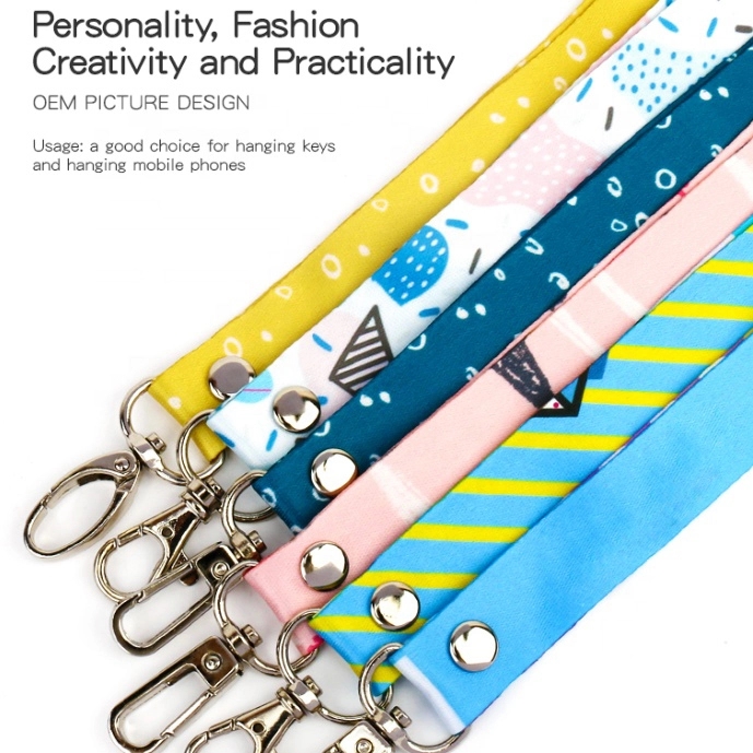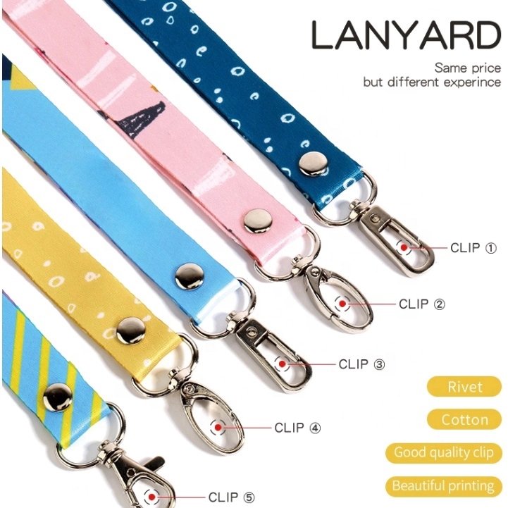 The basics: The neck lanyard is inches wide (2 centimeters) and 35″ inches from the bottom of the leather attachment piece to the top of the lanyard. Our lanyards are made of durable polyester and genuine leather, with a quality metal clasp to attach your wallet, keys, ID badges, and other accessories.