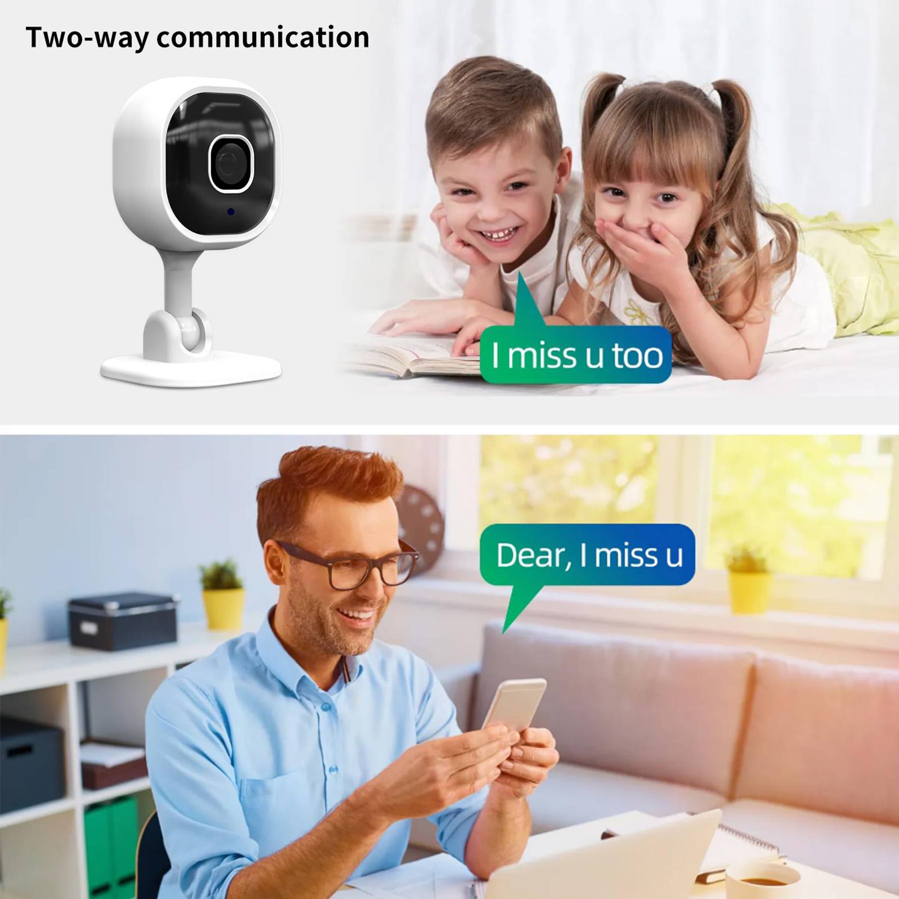 Equipped with a built-in microphone & speaker that allows you to talk and listen to your baby.Keep your family safe with cameras for home security indoor by warding off intruders.The baby camera supports motion detection and push alert to monitor your baby/pet/elder. When your baby is climbing out of the cribs or your pet is scratching the sofa, baby camera monitor will send alert message on your phone to let you know.