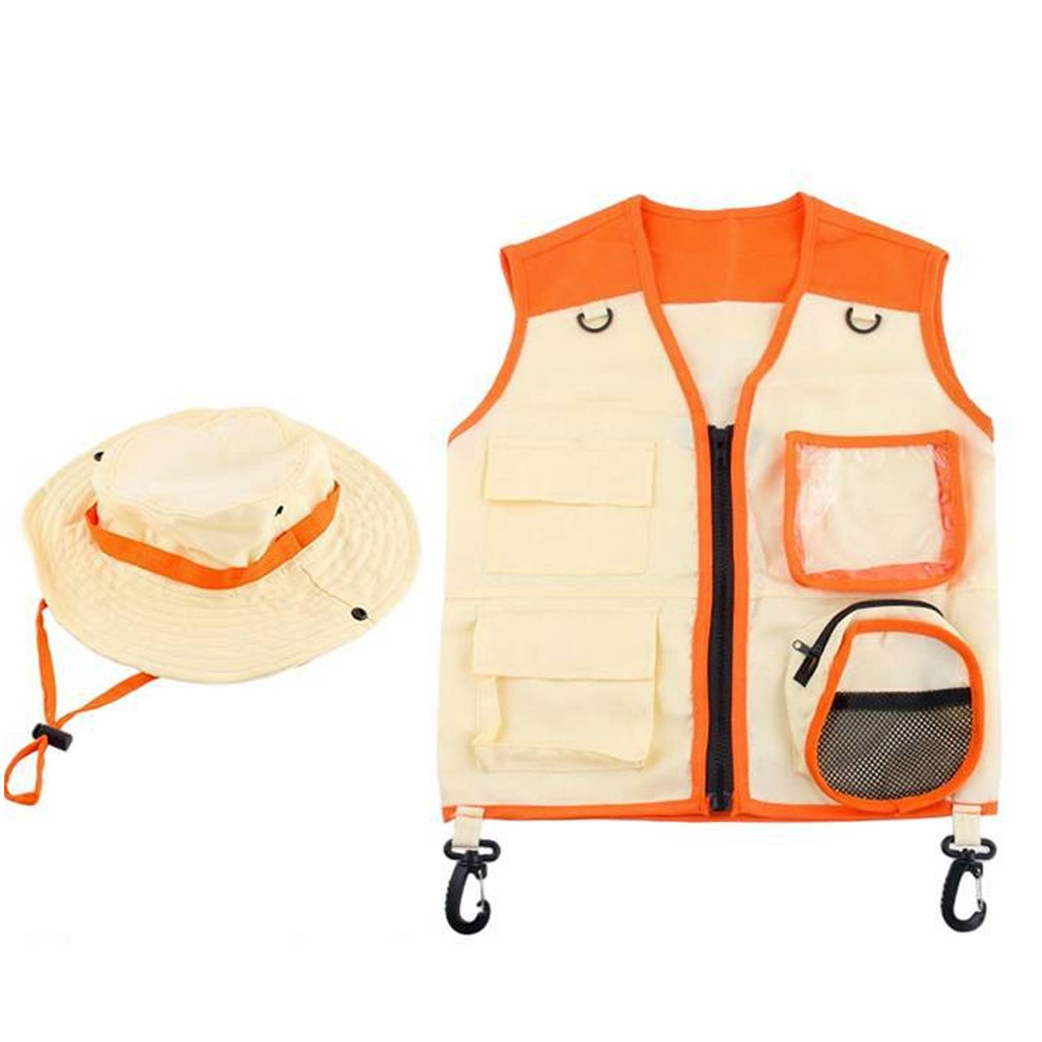 Lightweight polyester vest and hat set for kids; safe, comfy, and ideal for outdoor play, camping, or nature adventures.